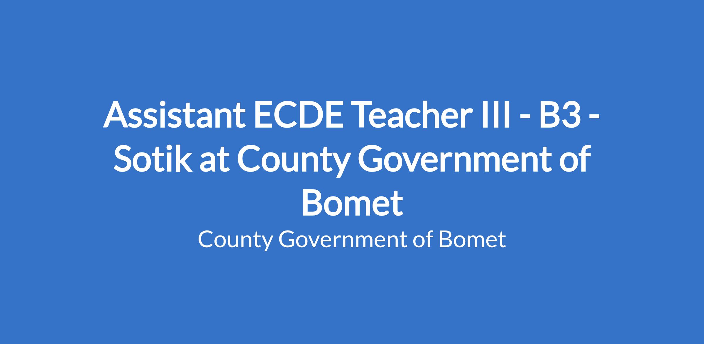 Assistant ECDE Teacher III - B3 - Sotik at County Government of Bomet