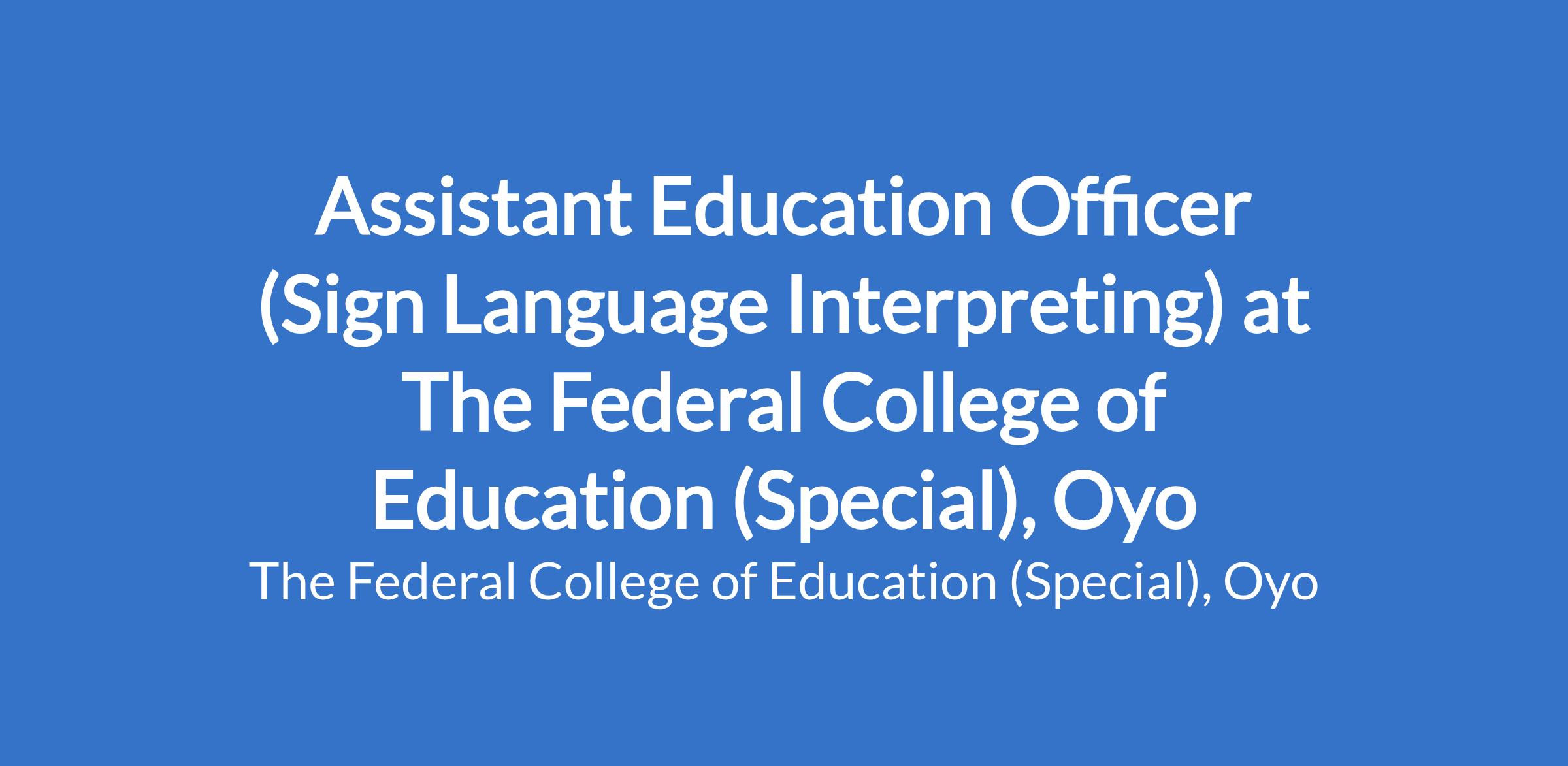 Assistant Education Officer (Sign Language Interpreting) at The Federal College of Education (Special), Oyo