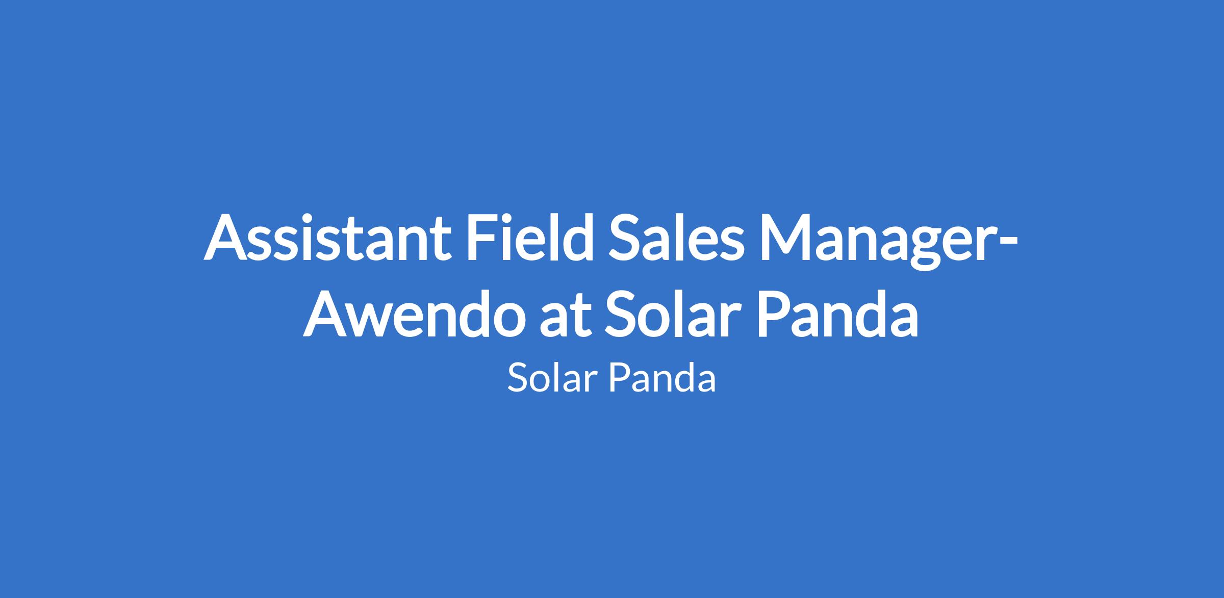Assistant Field Sales Manager- Awendo at Solar Panda