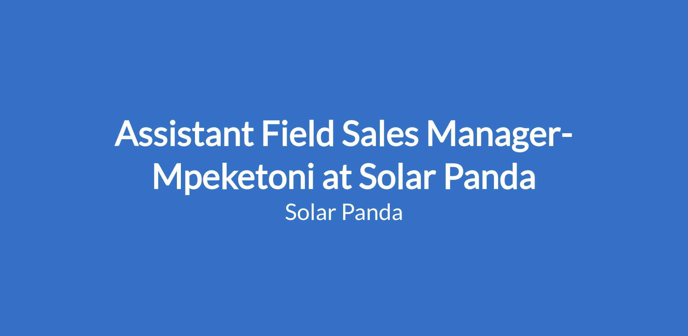 Assistant Field Sales Manager- Mpeketoni at Solar Panda
