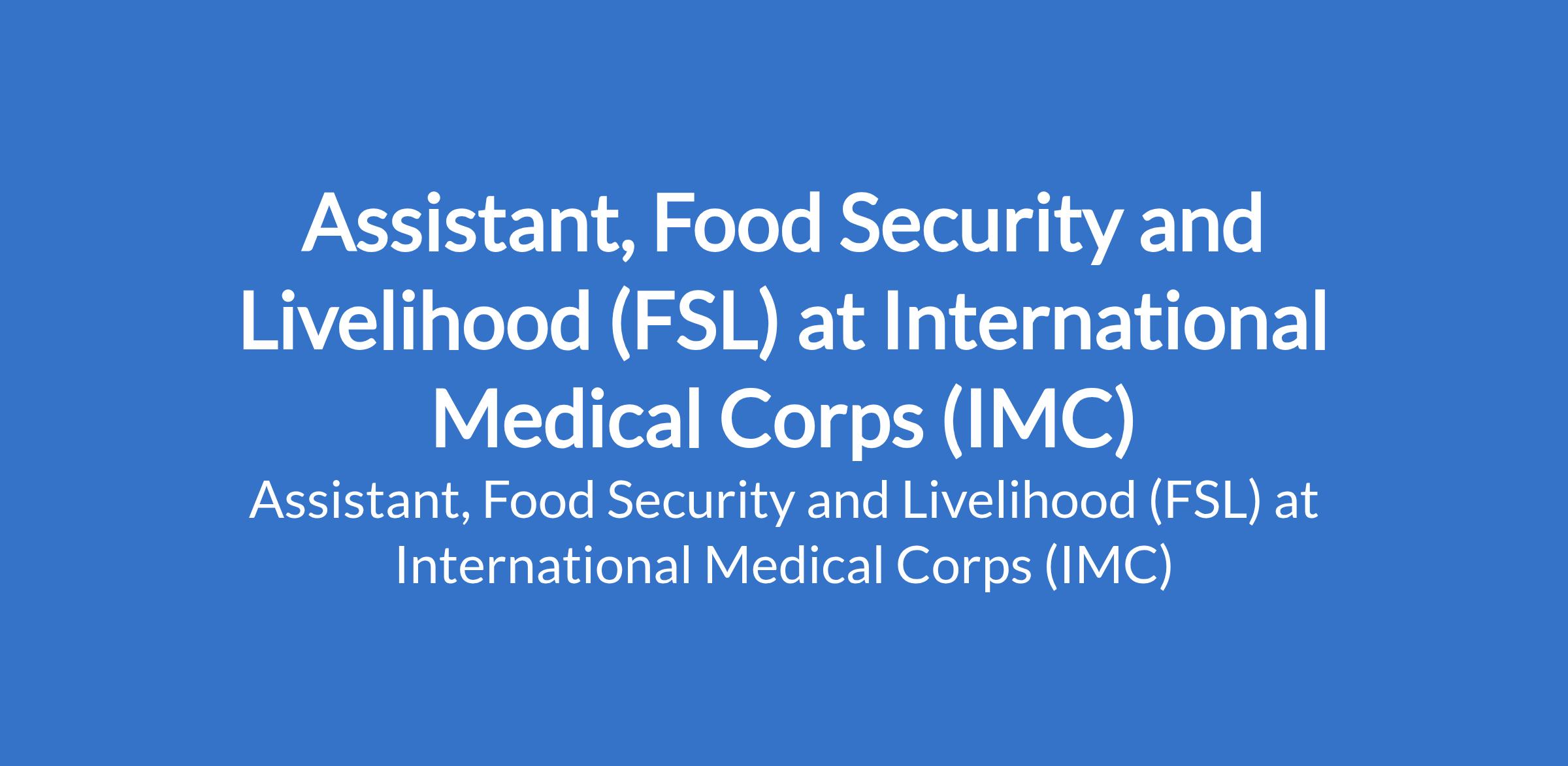 International Medical Corps (IMC) is recruiting to fill the position of: Assistant, Food Security and Livelihood (FSL). The position is located in Damboa, Borno State. Interested candidates should possess a University Degree in either Agriculture or Social Sciences with at least 1 year experience implementing food security and livelihood strengthening programs with an International Organization. An equivalent combination of relevant education and experience may be substituted as appropriate.