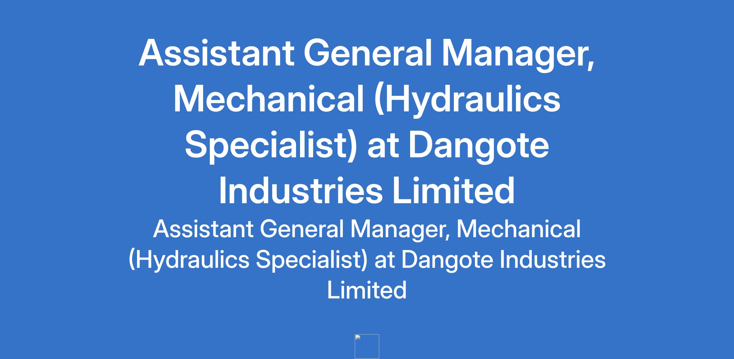 Dangote Industries Limited is recruiting to fill the position of: Assistant General Manager, Mechanical (Hydraulics Specialist). The position is located in Obajana Plant, Kogi State. Interested candidates should possess a Bachelors Degreein Mechanical Engineering, with Hydraulics Training /Hydraulics Special Course or a related field with 15+ years of experience in cement plant hydraulics Operation, maintenance and Trouble Shooting.