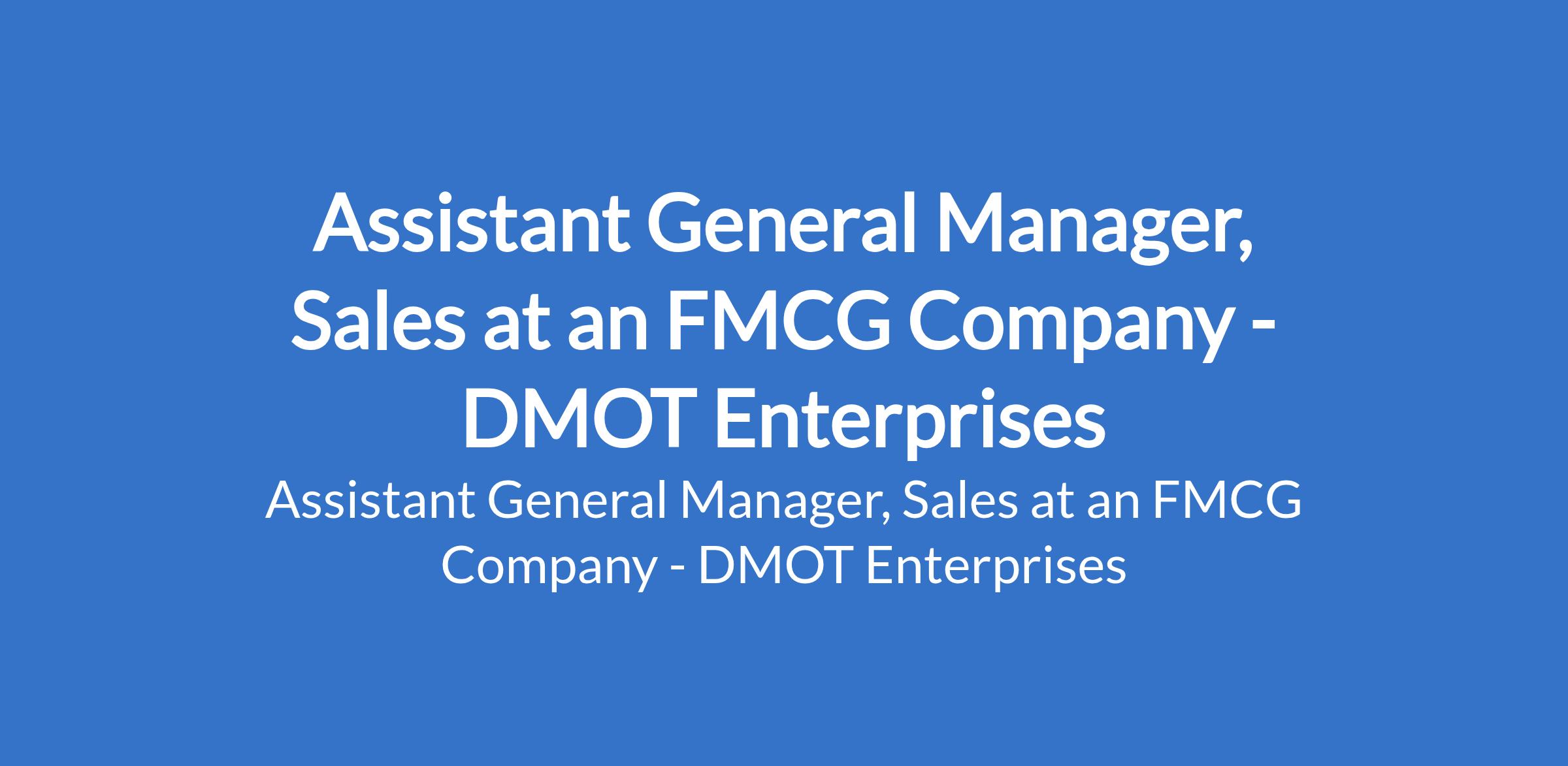 DMOT Enterprises is recruiting to fill the position of: Assistant General Manager, Sales. The position is located in Ogun State. Interested candidates should possess a Bachelors / Master`s Degree and 10+ years of progressive experience in sales, with at least 5+ years in senior leadership/management roles (Sales Manager, Director) in a beverage setting.