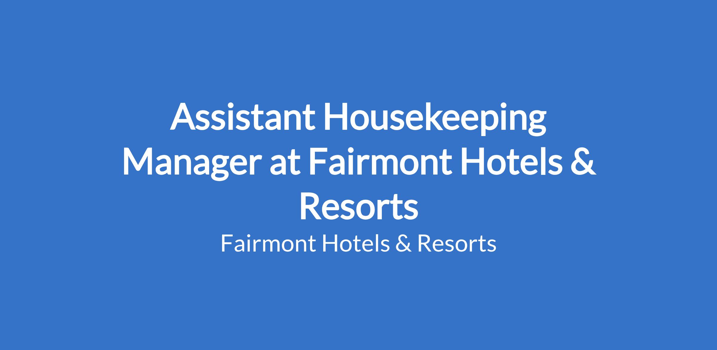 Creating an engaging work environment for Colleagues of Fairmont Hotels & Resorts is as important as turning moments into memories for our guests. The standards and values you model as Assistant Housekeeping Manager will inspire your team - not only to ensure exceptional guest rooms, public areas and heart of the house areas, but also to grow their careers with Fairmont.
