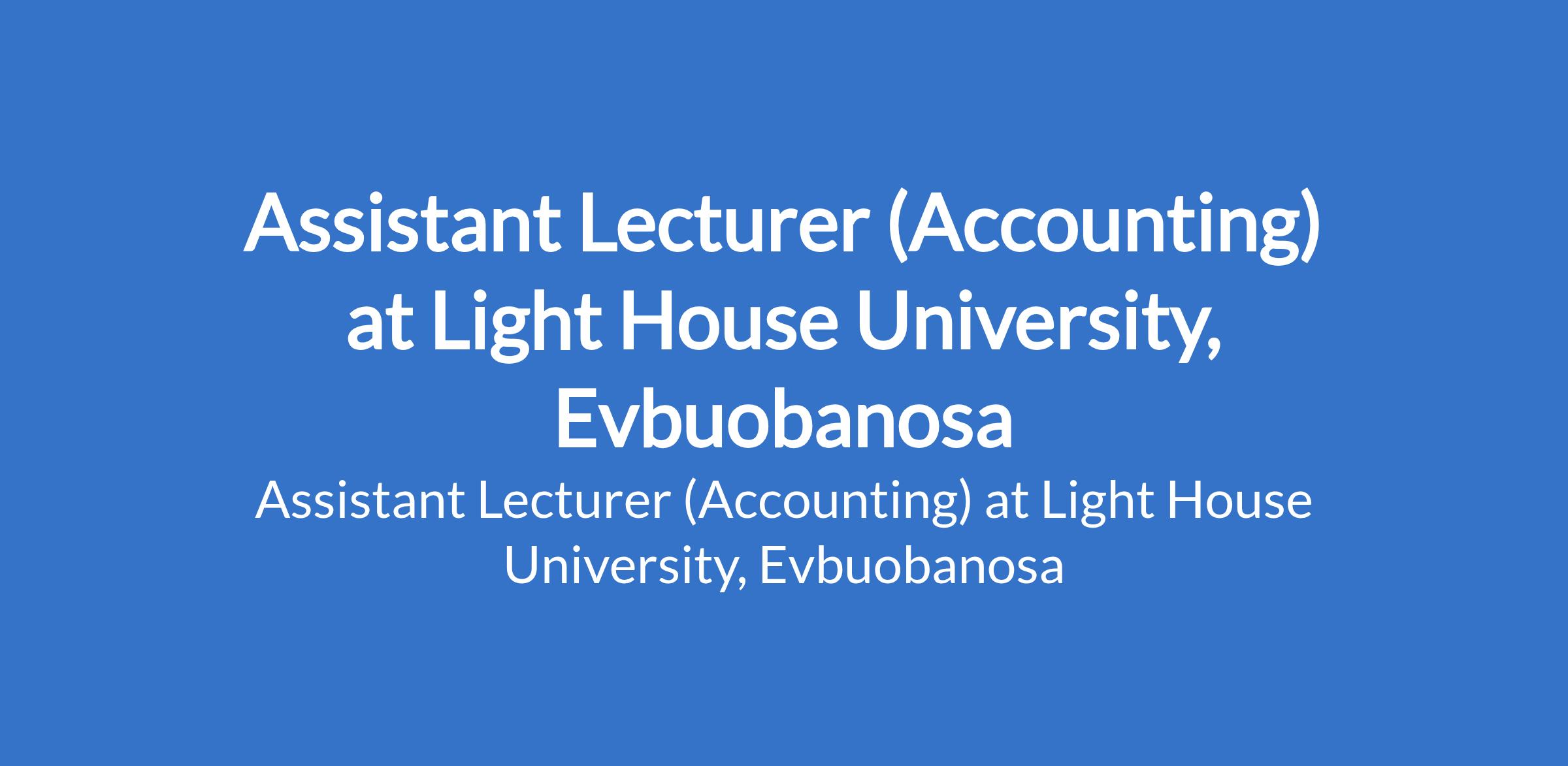 LightHouse University, Evbuobanosa invites applications from suitably qualified candidates to fill the position of: Assistant Lecturer (Accounting). The position is located in Edo State. Interested candidates should possess a Master's Degree in the relevant field.