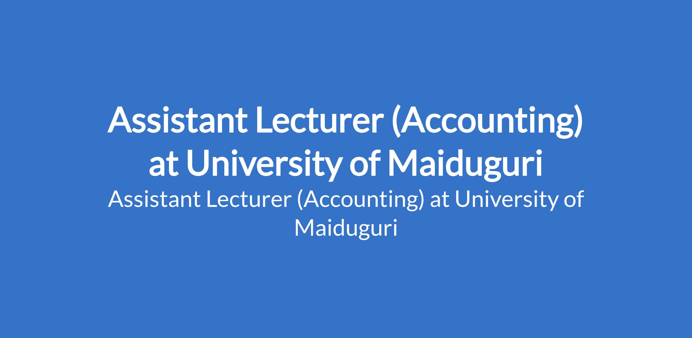 University of Maiduguri invites applications from suitable candidates to fill the position of: Assistant Lecturer (Accounting). The position is located in Borno State. Interested candidates should possess a Master's Degree from University of Maiduguri or another recognised institution or a First Class / Second Class Upper Degree with relevant professional qualification where applicable.