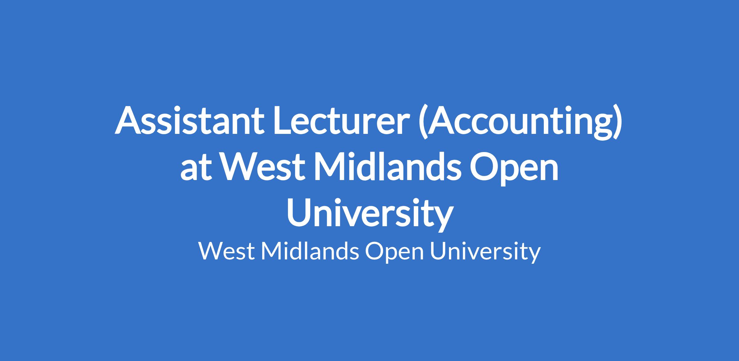 Assistant Lecturer (Accounting) at West Midlands Open University