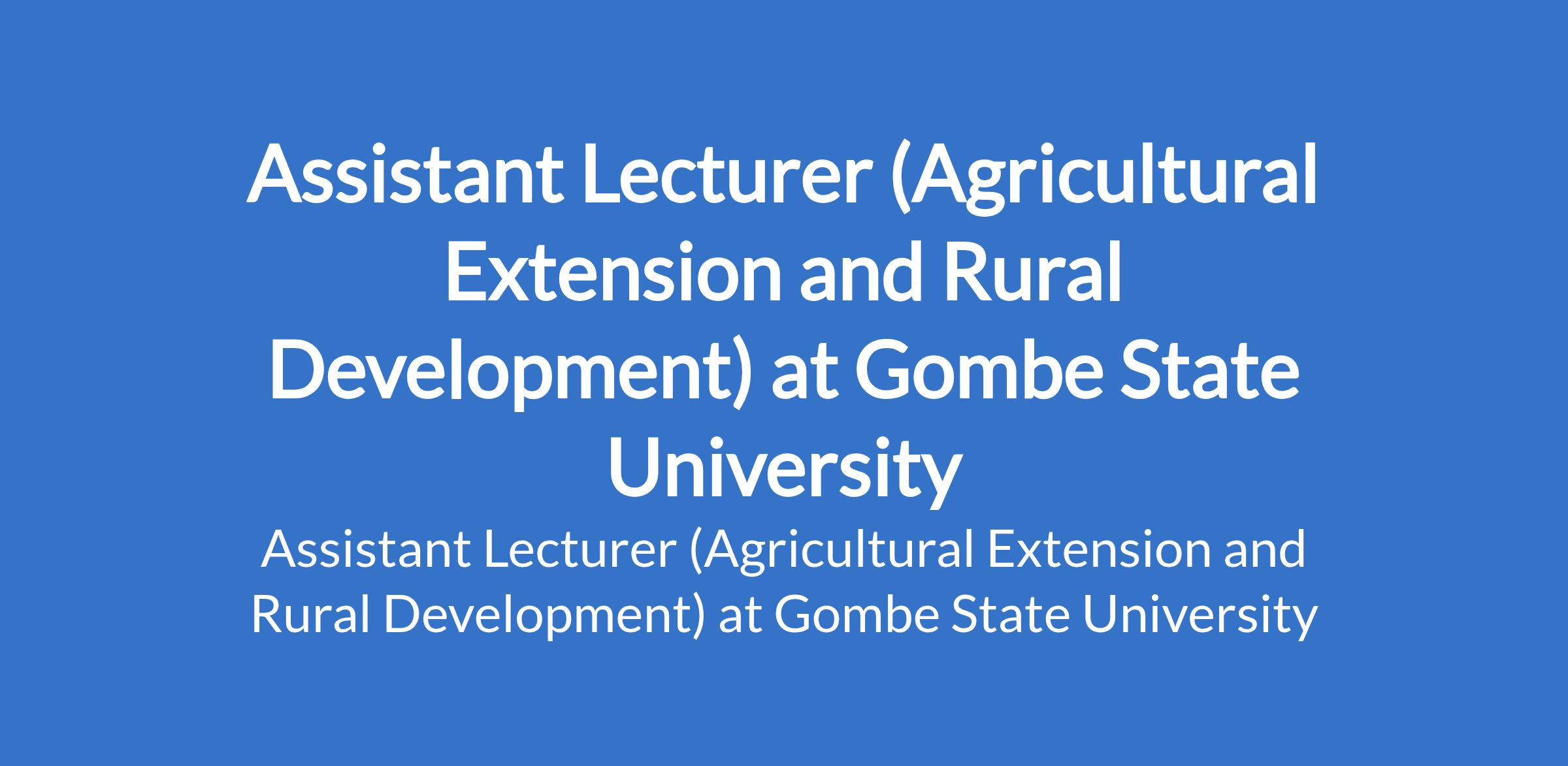 Gombe State University invites applications from suitable candidates to fill the position of: Assistant Lecturer (Agricultural Extension and Rural Development). The position is located in Tudun - Wada, Gombe State. Interested candidates should possess a Masters Degree in a relevant field with demonstrated research potential.
