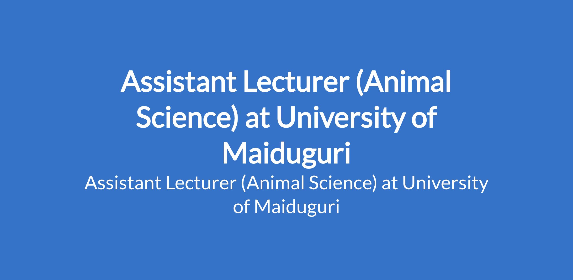 University of Maiduguri invites applications from suitable candidates to fill the position of: Assistant Lecturer (Animal Science). The position is located in Borno State. Interested candidates should possess a Master's Degree from University of Maiduguri or another recognised institution or a First Class / Second Class Upper Degree with relevant professional qualification where applicable.