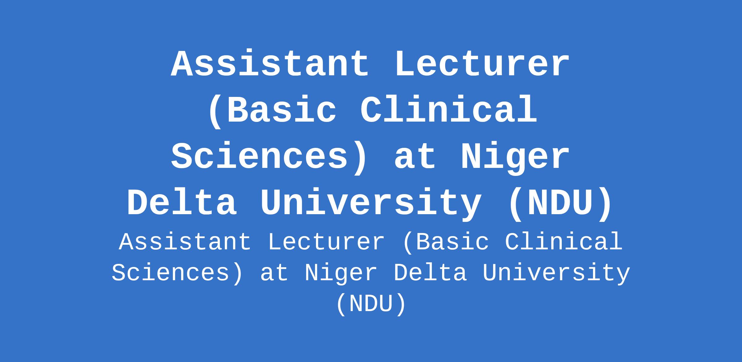Niger Delta University (NDU) invites applications from suitably qualified candidates to fill the position of: Assistant Lecturer (Basic Clinical Sciences). The position is located in Wilberforce Island, Bayelsa State. Interested candidates should possess a good First Degree not less than second class lower division plus a Masters Degree, or a Masters Degree with professional registration and must be registered on Google Scholar.