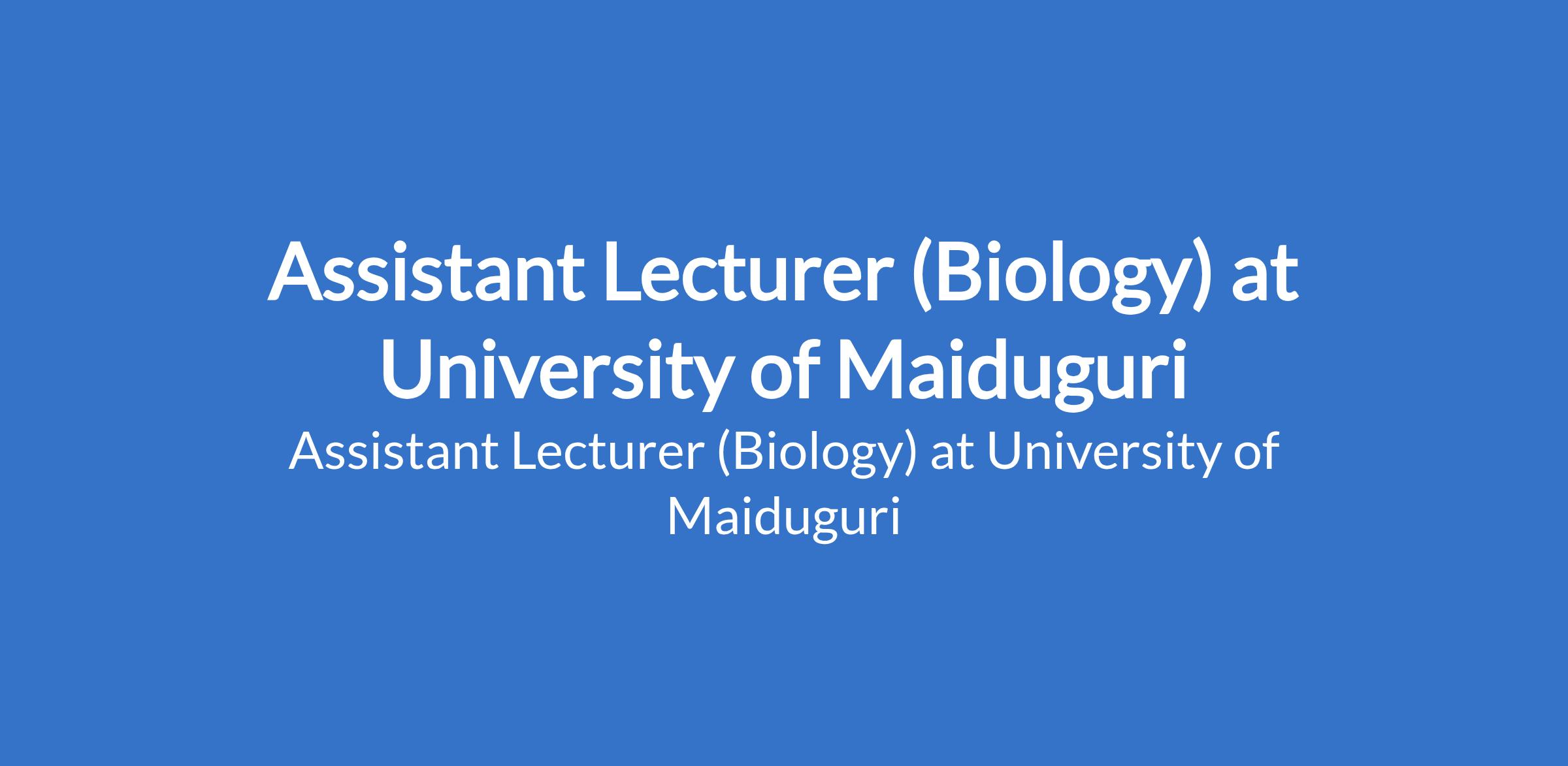 University of Maiduguri invites applications from suitable candidates to fill the position of: Assistant Lecturer (Biology). The position is located in Borno State. Interested candidates should possess a Master's Degree from University of Maiduguri or another recognised institution or a First Class / Second Class Upper Degree with relevant professional qualification where applicable.