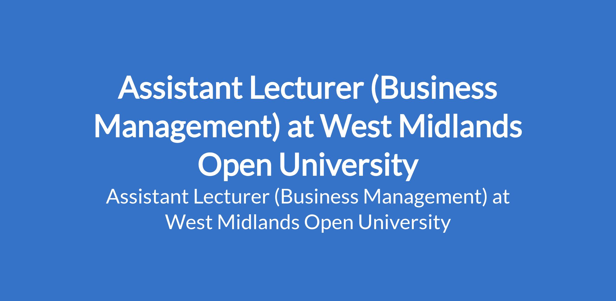 Assistant Lecturer (Business Management) at West Midlands Open University