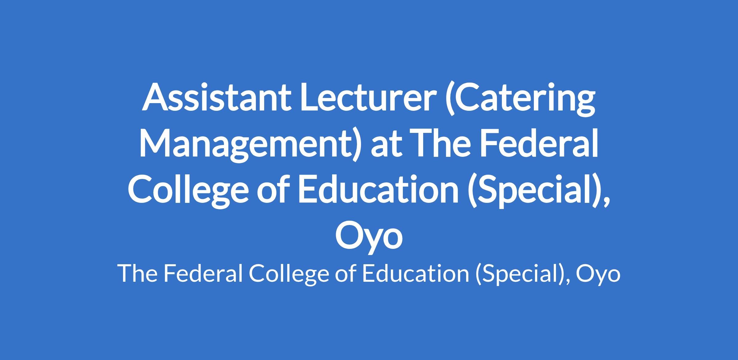 Assistant Lecturer (Catering Management) at The Federal College of Education (Special), Oyo