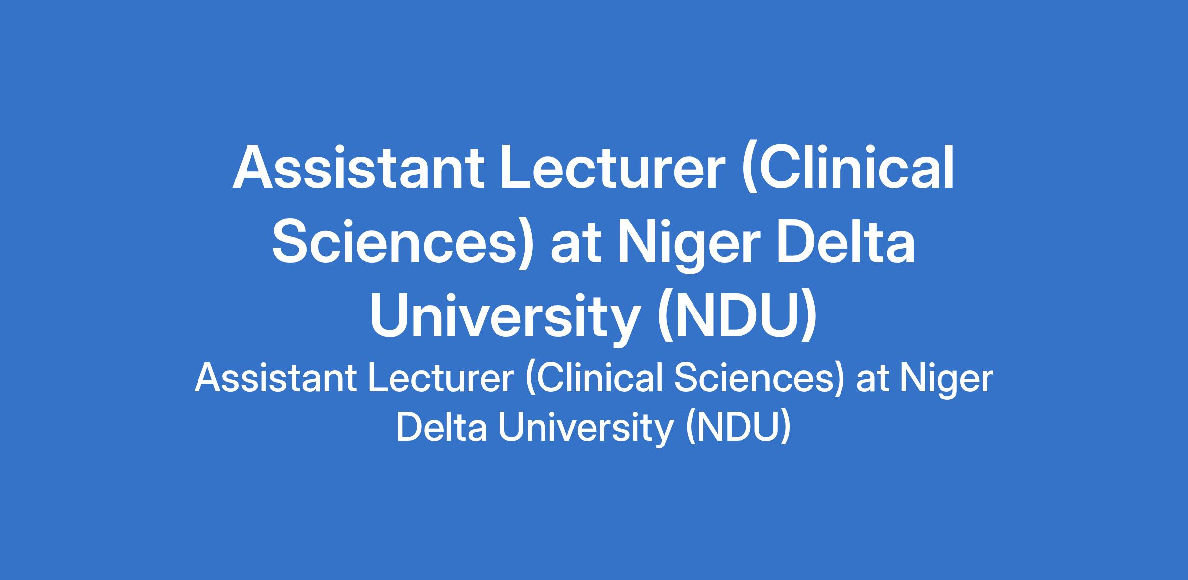 Niger Delta University (NDU) invites applications from suitably qualified candidates to fill the position of: Assistant Lecturer (Clinical Sciences). The position is located in Wilberforce Island, Bayelsa State. Interested candidates should possess a good First Degree not less than second class lower division plus a Masters Degree, or a Masters Degree with professional registration and must be registered on Google Scholar.