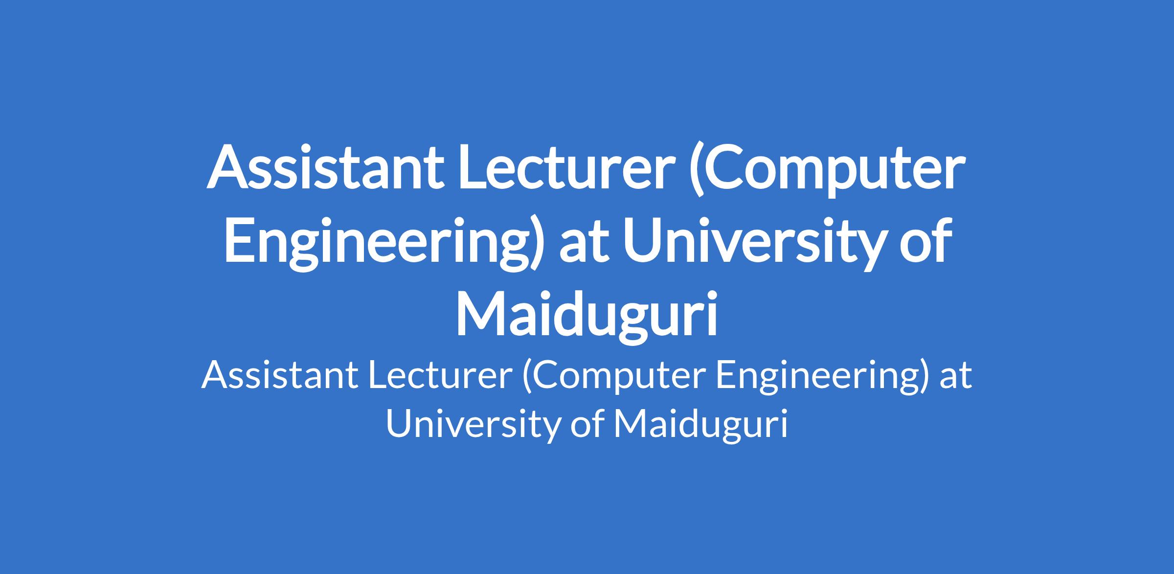 University of Maiduguri invites applications from suitable candidates to fill the position of: Assistant Lecturer (Computer Engineering). The position is located in Borno State. Interested candidates should possess a Master's Degree from University of Maiduguri or another recognised institution or a First Class / Second Class Upper Degree with relevant professional qualification where applicable.