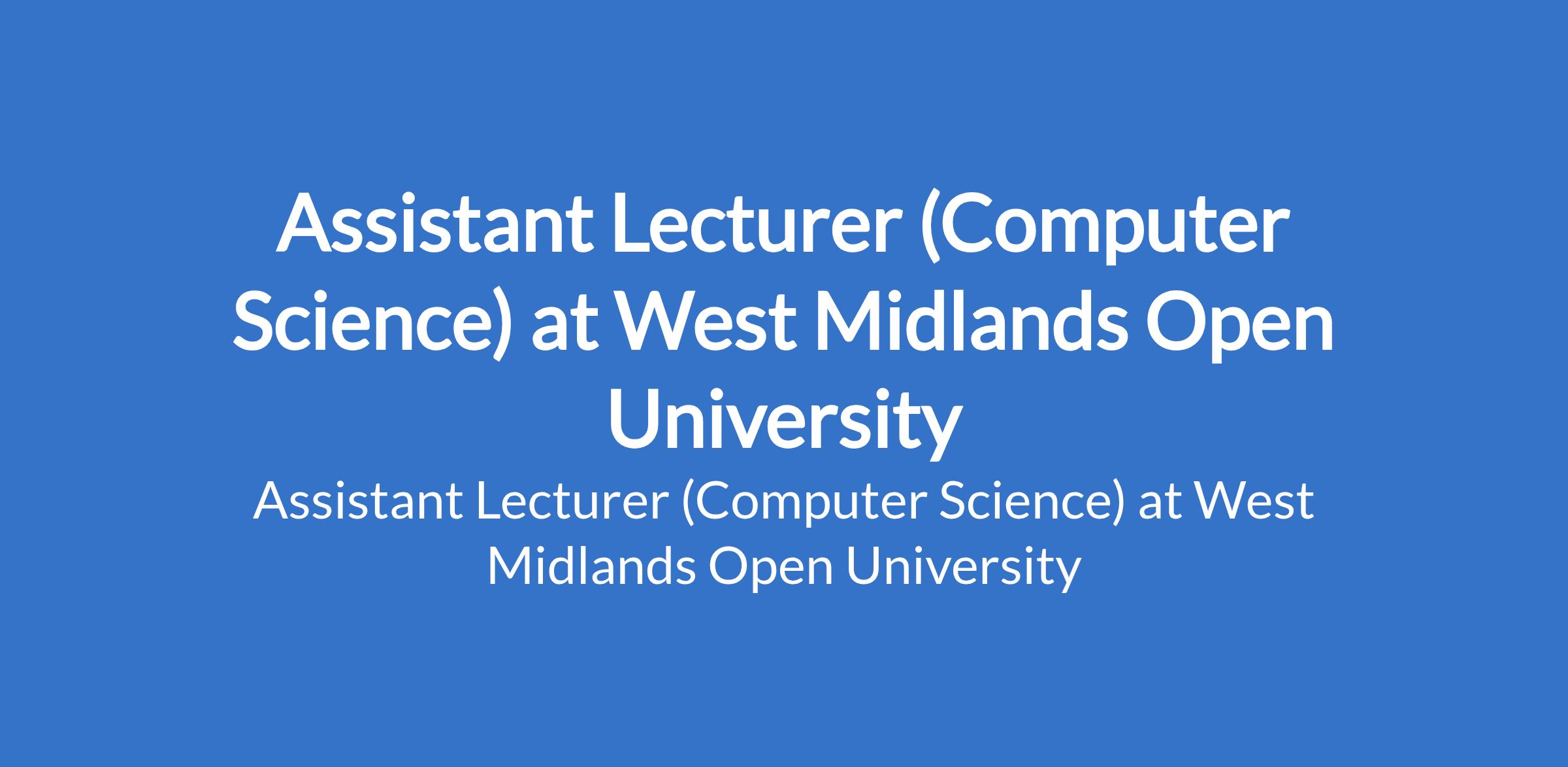 Assistant Lecturer (Computer Science) at West Midlands Open University