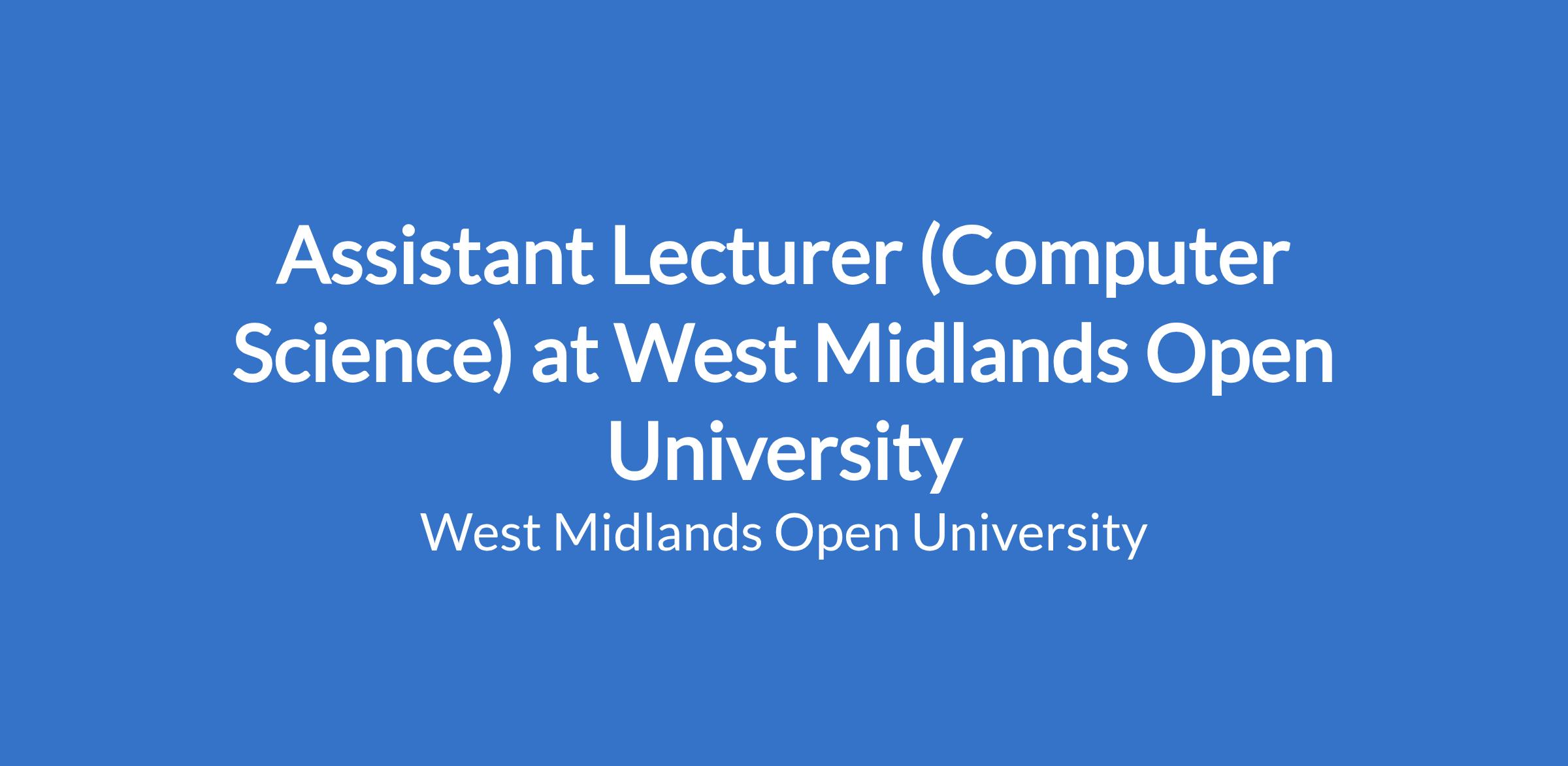 Assistant Lecturer (Computer Science) at West Midlands Open University