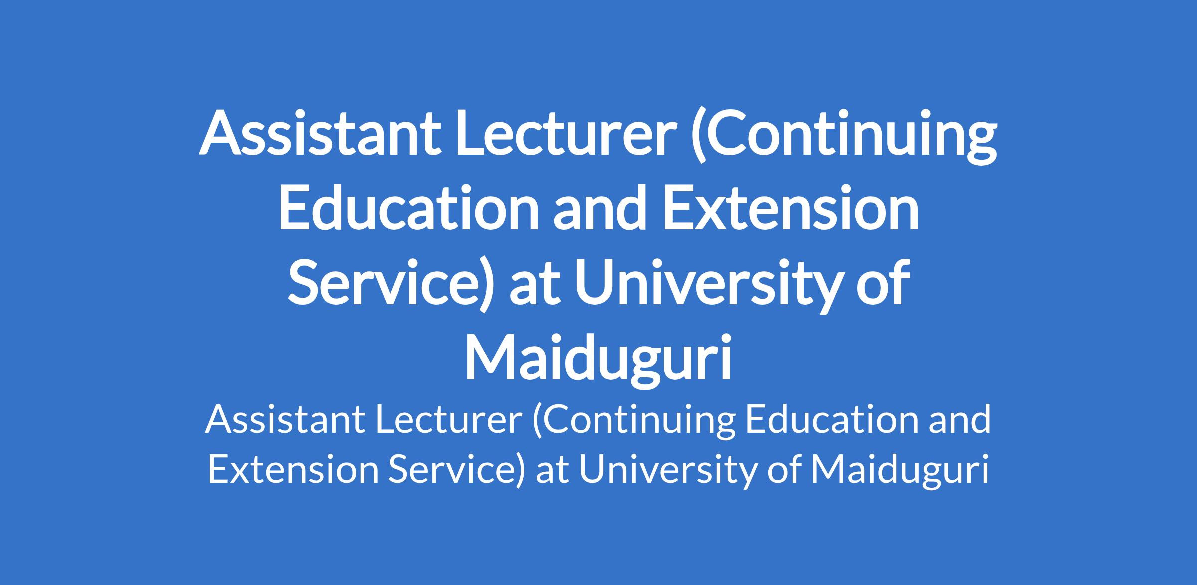 University of Maiduguri invites applications from suitable candidates to fill the position of: Assistant Lecturer (Continuing Education and Extension Service). The position is located in Borno State. Interested candidates should possess a Master's Degree from University of Maiduguri or another recognised institution or a First Class / Second Class Upper Degree with relevant professional qualification where applicable.