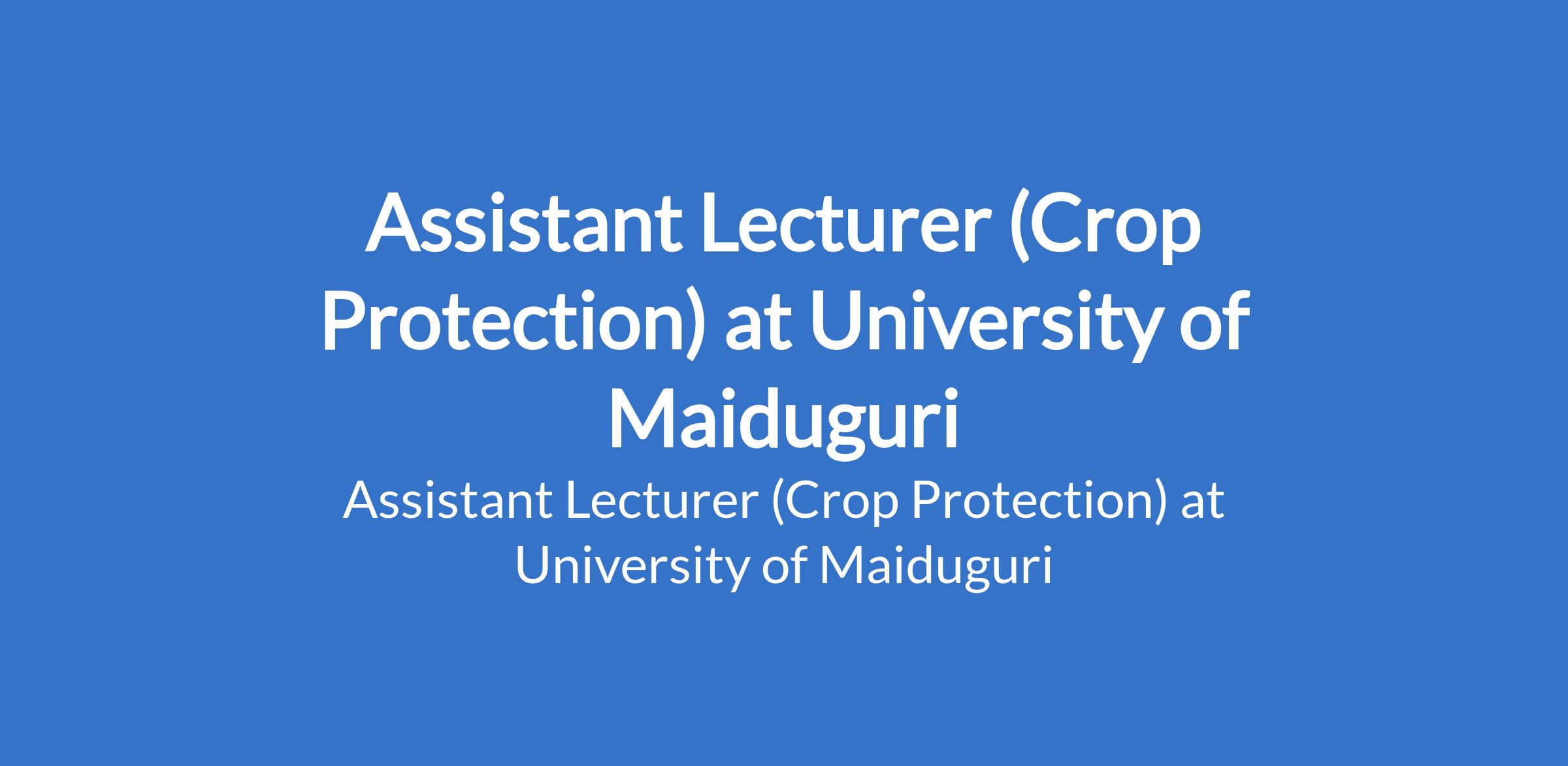 University of Maiduguri invites applications from suitable candidates to fill the position of: Assistant Lecturer (Crop Protection). The position is located in Borno State. Interested candidates should possess a Master's Degree from University of Maiduguri or another recognised institution or a First Class / Second Class Upper Degree with relevant professional qualification where applicable.