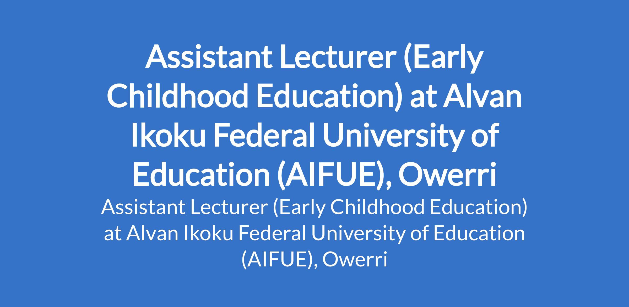 Alvan Ikoku Federal University of Education (AIFUE), Owerri invites applications from suitably qualified candidates for the position of: Assistant Lecturer (Early Childhood Education). The position is located in Imo State. Interested candidates should possess a Master's Degree in the relevant field. Evidence of research potential is desirable.