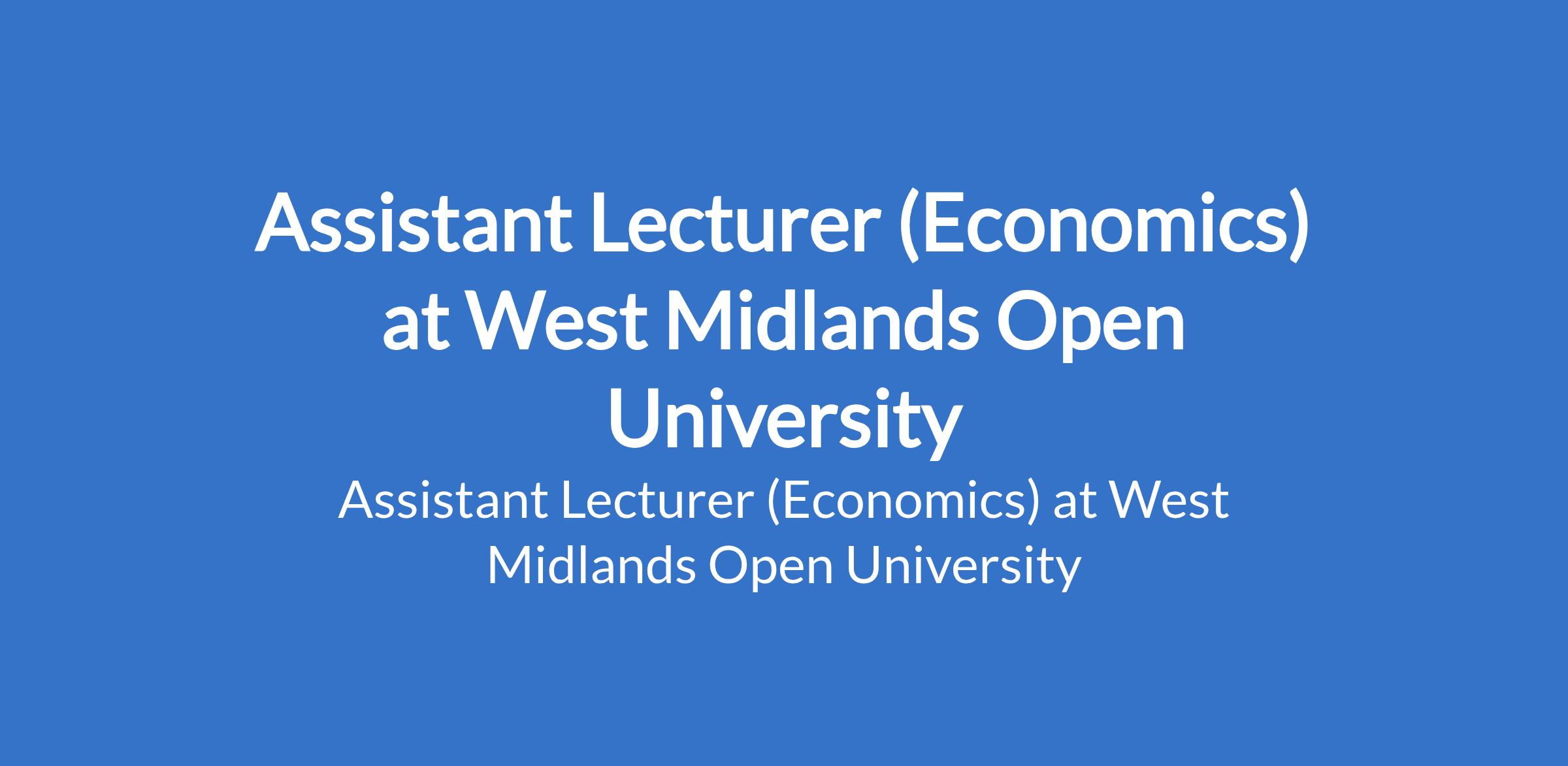 Assistant Lecturer (Economics) at West Midlands Open University