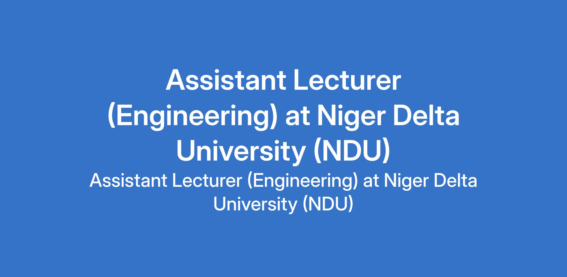 Niger Delta University (NDU) invites applications from suitably qualified candidates to fill the position of: Assistant Lecturer (Engineering). The position is located in Wilberforce Island, Bayelsa State. Interested candidates should possess a good First Degree not less than second class lower division plus a Masters Degree, or a Masters Degree with professional registration and must be registered on Google Scholar.