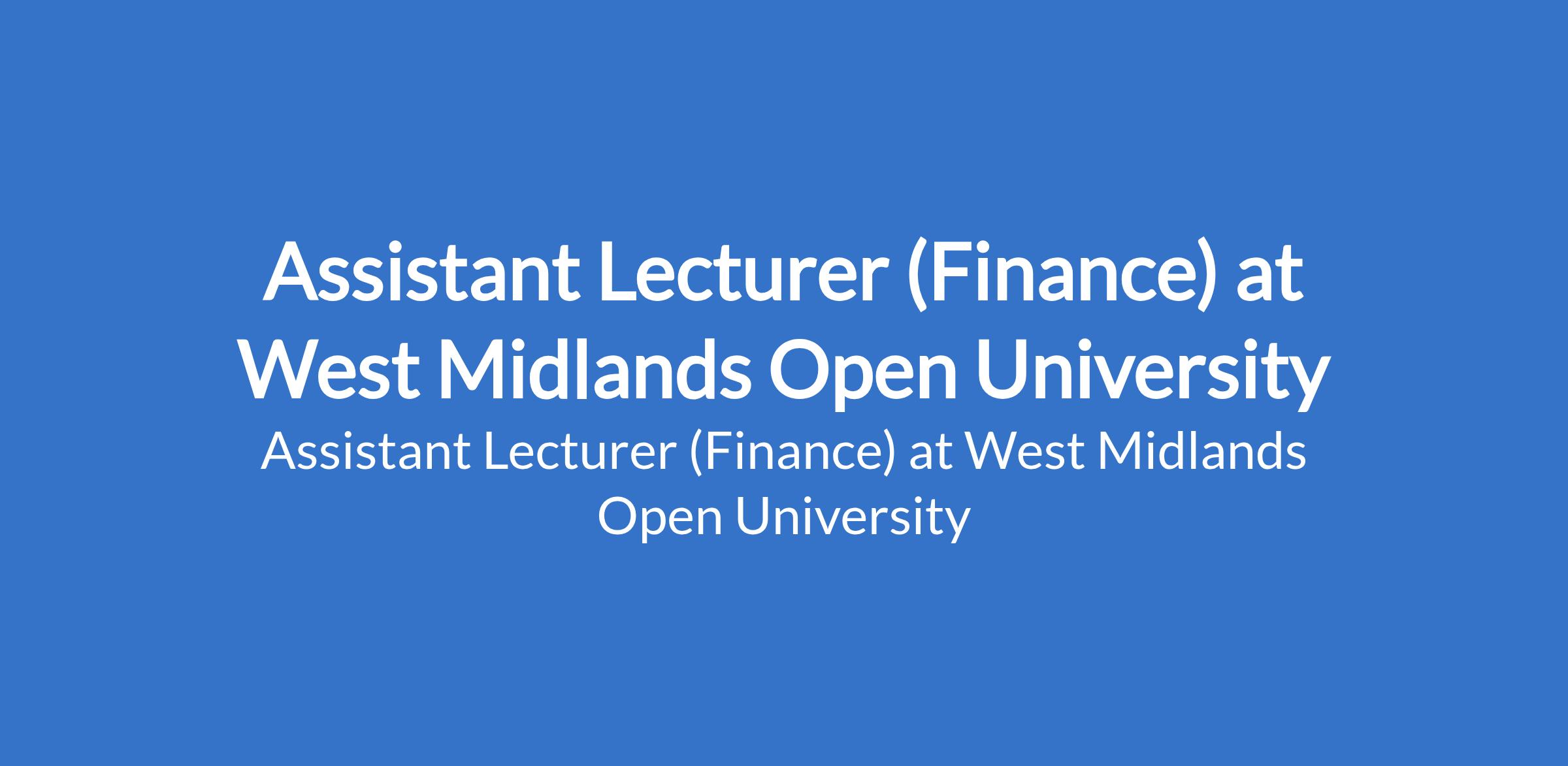 Assistant Lecturer (Finance) at West Midlands Open University