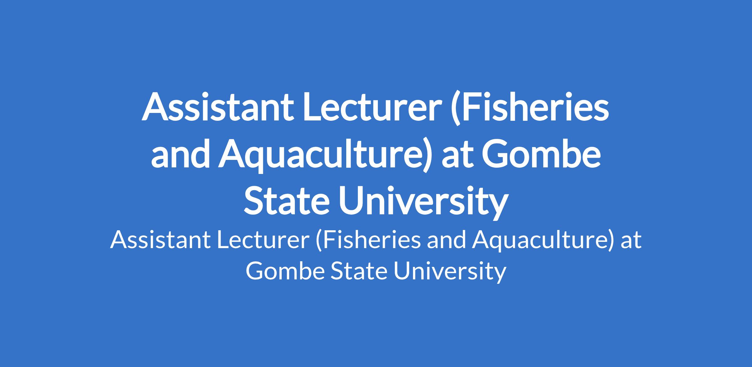 Gombe State University invites applications from suitable candidates to fill the position of: Assistant Lecturer (Fisheries and Aquaculture). The position is located in Tudun - Wada, Gombe State. Interested candidates should possess a Masters Degree in a relevant field with demonstrated research potential.