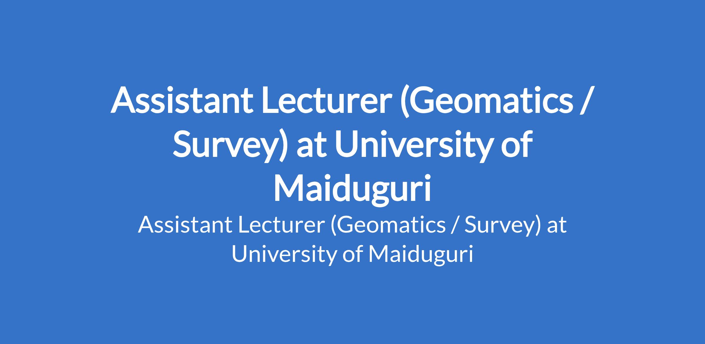 University of Maiduguri invites applications from suitable candidates to fill the position of: Assistant Lecturer (Geomatics / Survey). The position is located in Borno State. Interested candidates should possess a Master's Degree from University of Maiduguri or another recognised institution or a First Class / Second Class Upper Degree with relevant professional qualification where applicable.