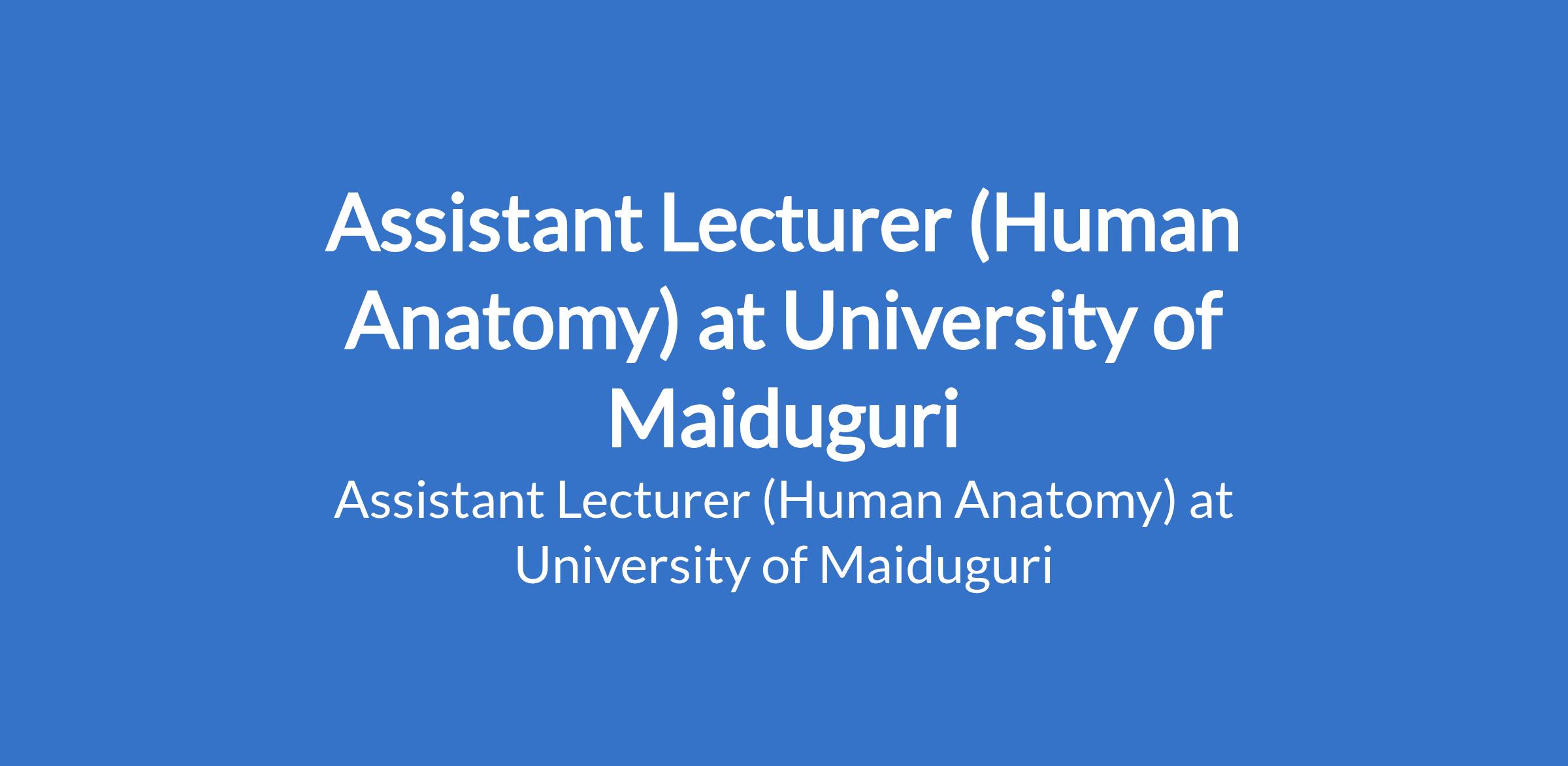 University of Maiduguri invites applications from suitable candidates to fill the position of: Assistant Lecturer (Human Anatomy). The position is located in Borno State. Interested candidates should possess a Master's Degree from University of Maiduguri or another recognised institution or a First Class / Second Class Upper Degree with relevant professional qualification where applicable.