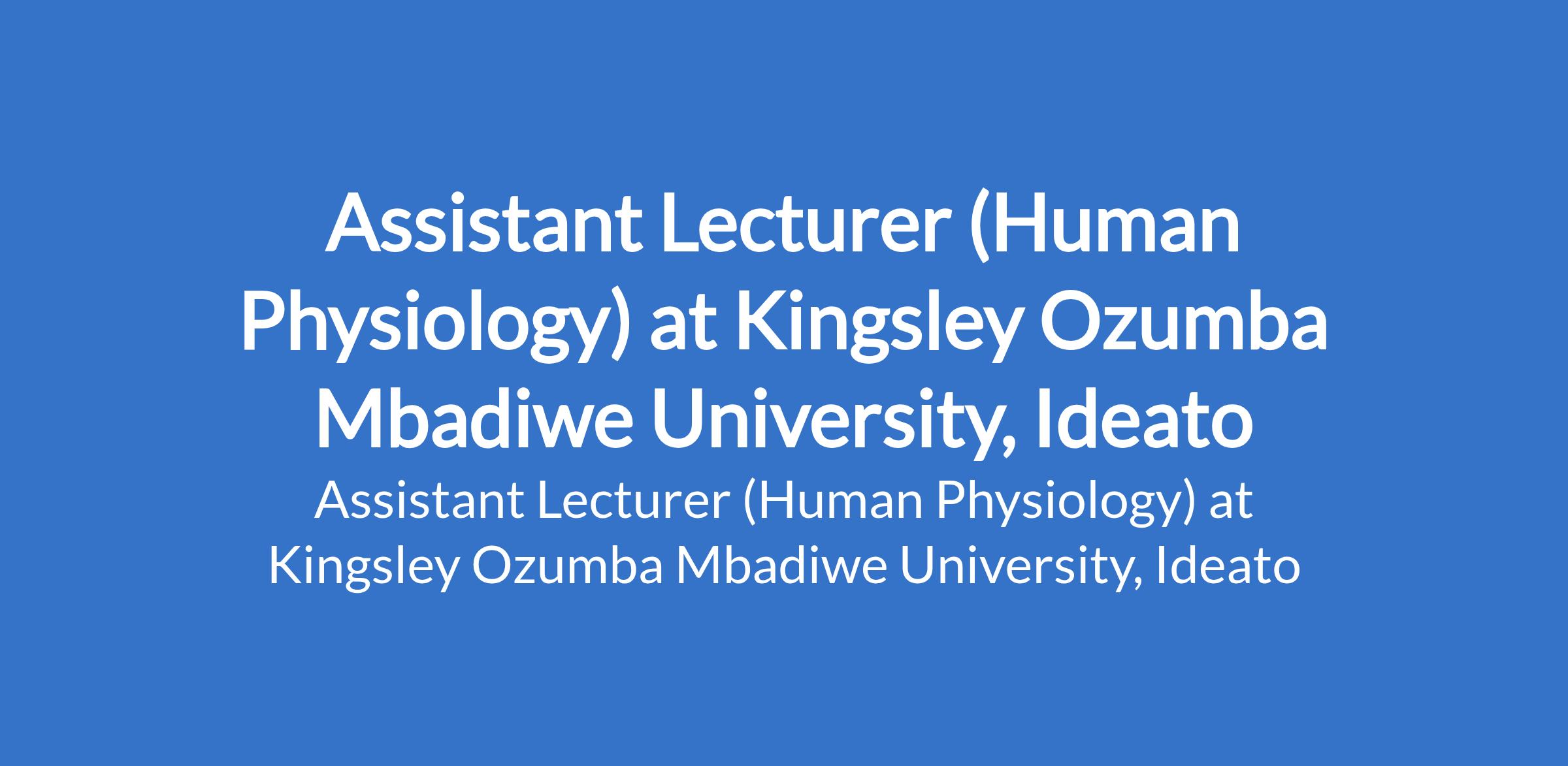Assistant Lecturer (Human Physiology) at Kingsley Ozumba Mbadiwe University, Ideato