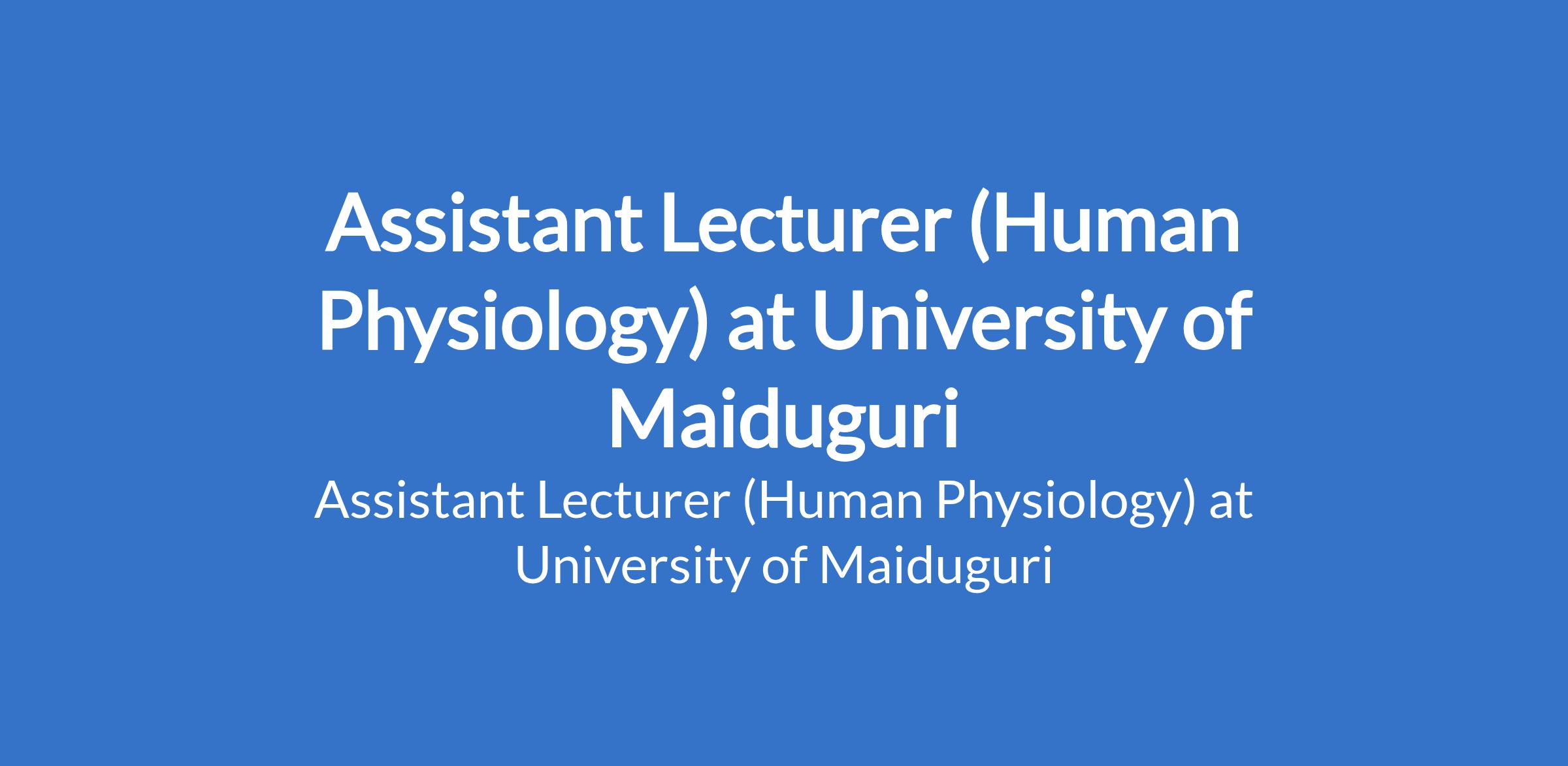University of Maiduguri invites applications from suitable candidates to fill the position of: Assistant Lecturer (Human Physiology). The position is located in Borno State. Interested candidates should possess a Master's Degree from University of Maiduguri or another recognised institution or a First Class / Second Class Upper Degree with relevant professional qualification where applicable.