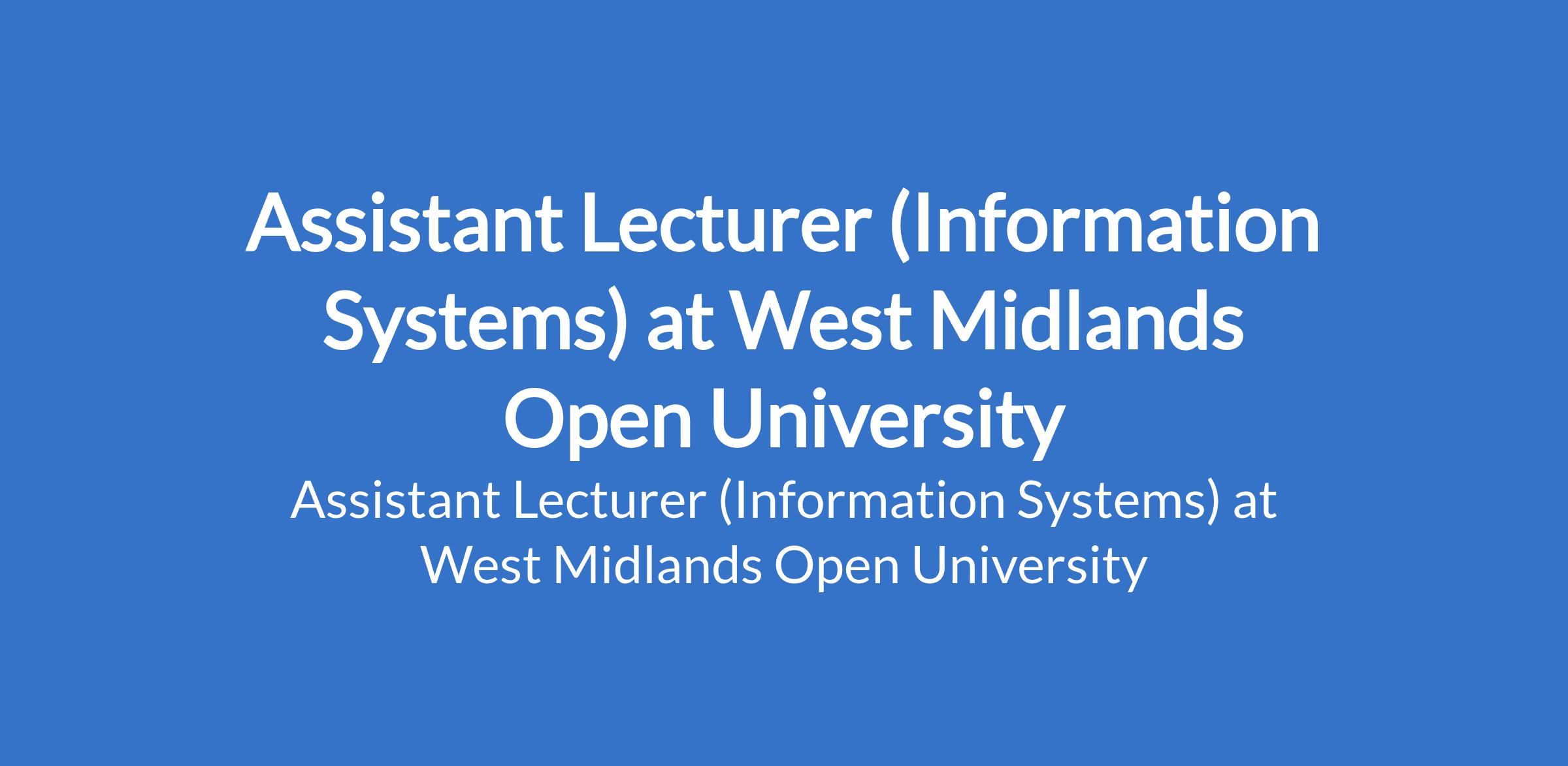 Assistant Lecturer (Information Systems) at West Midlands Open University