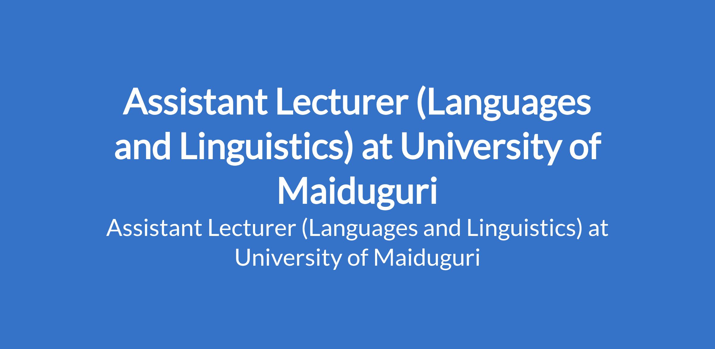 University of Maiduguri invites applications from suitable candidates to fill the position of: Assistant Lecturer (Languages and Linguistics). The position is located in Borno State. Interested candidates should possess a Master's Degree from University of Maiduguri or another recognised institution or a First Class / Second Class Upper Degree with relevant professional qualification where applicable.