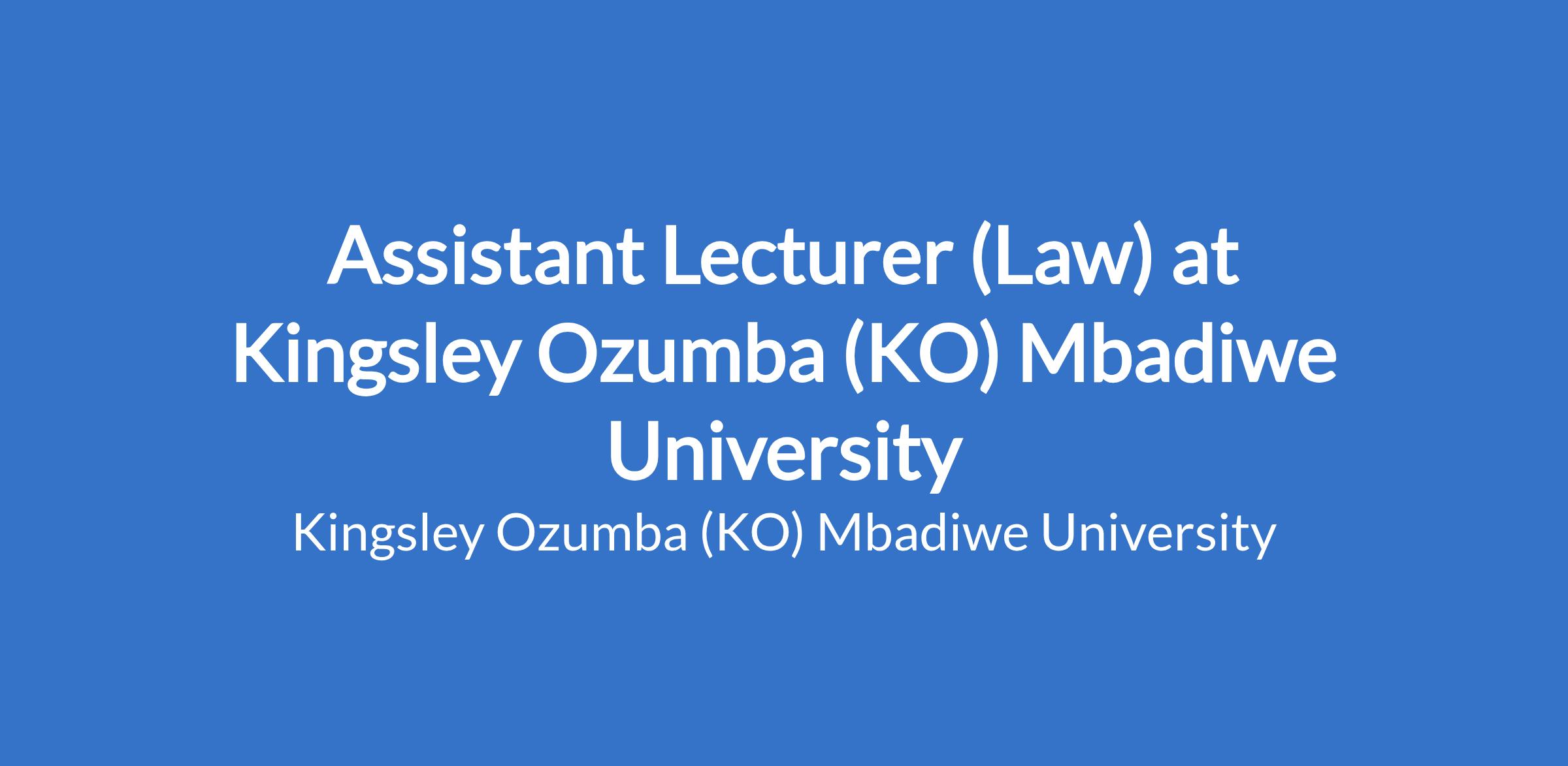Assistant Lecturer (Law) at Kingsley Ozumba (KO) Mbadiwe University
