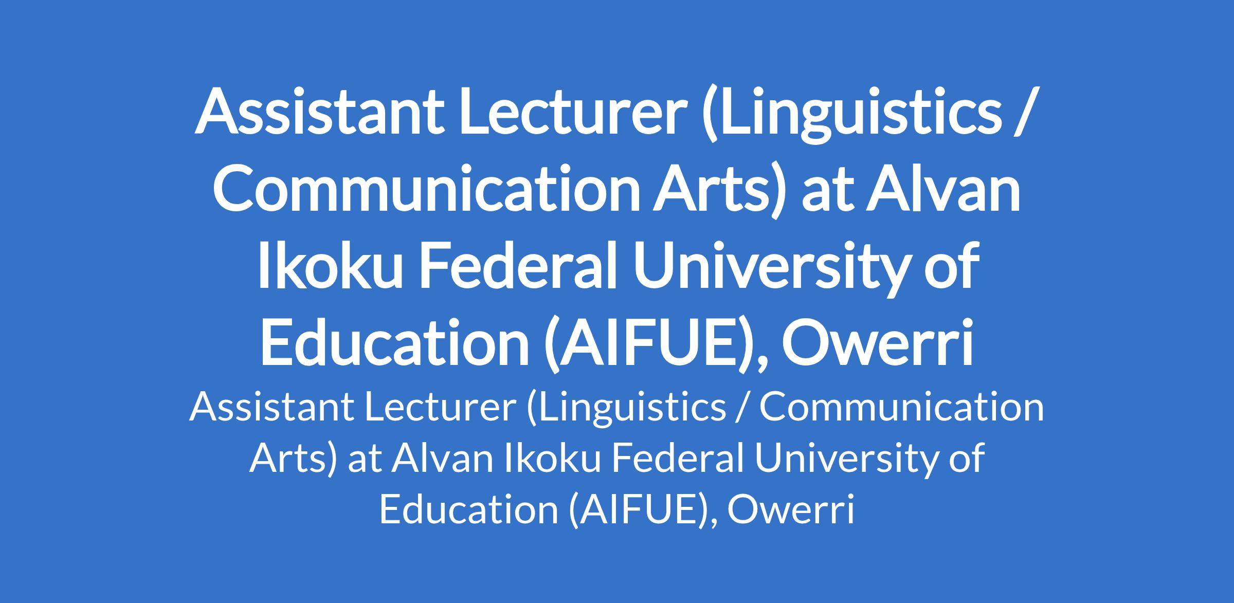 Alvan Ikoku Federal University of Education (AIFUE), Owerri invites applications from suitably qualified candidates for the position of: Assistant Lecturer (Linguistics / Communication Arts). The position is located in Imo State. Interested candidates should possess a Master's Degree in the relevant field. Evidence of research potential is desirable.