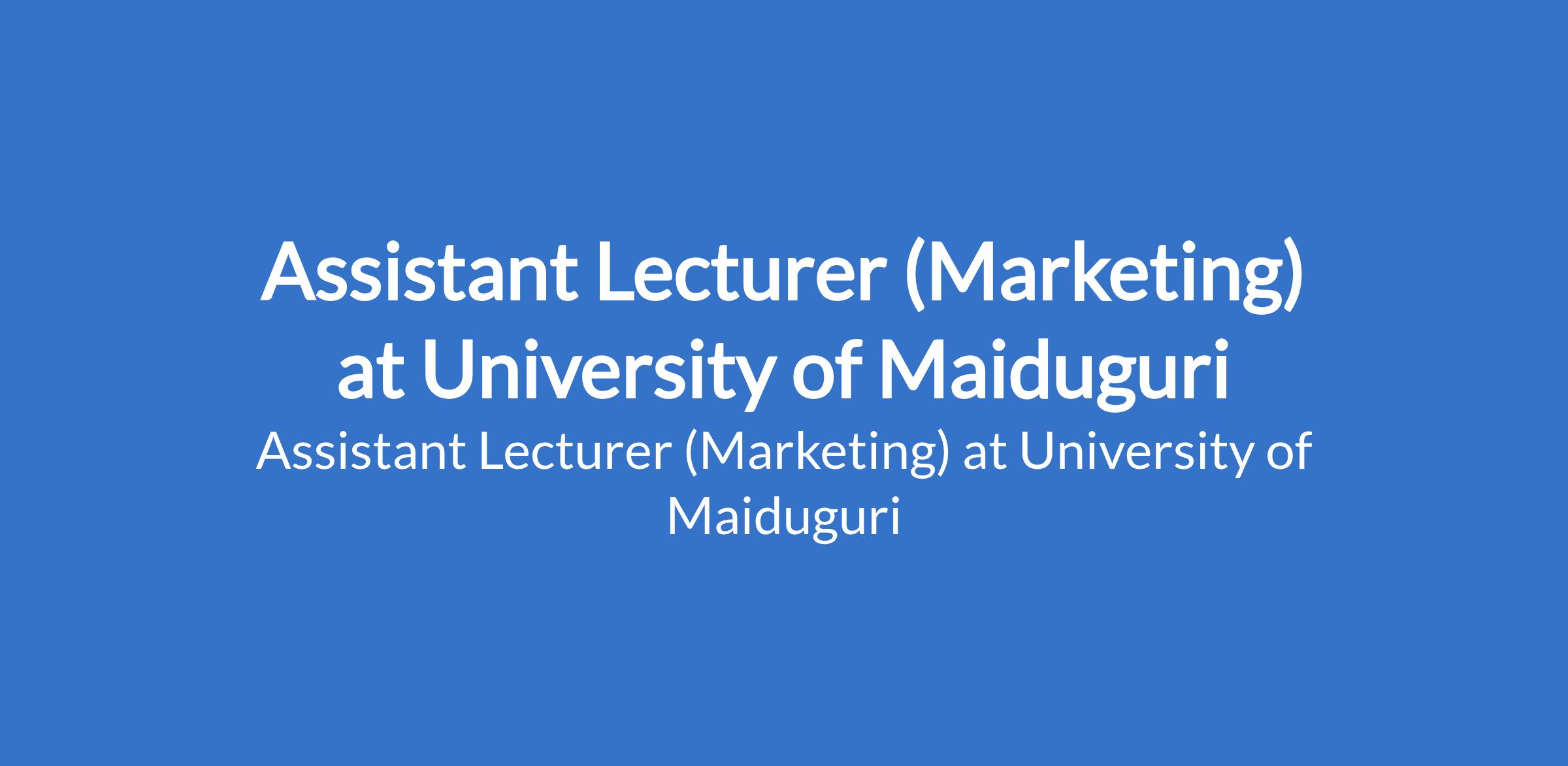 University of Maiduguri invites applications from suitable candidates to fill the position of: Assistant Lecturer (Marketing). The position is located in Borno State. Interested candidates should possess a Master's Degree from University of Maiduguri or another recognised institution or a First Class / Second Class Upper Degree with relevant professional qualification where applicable.