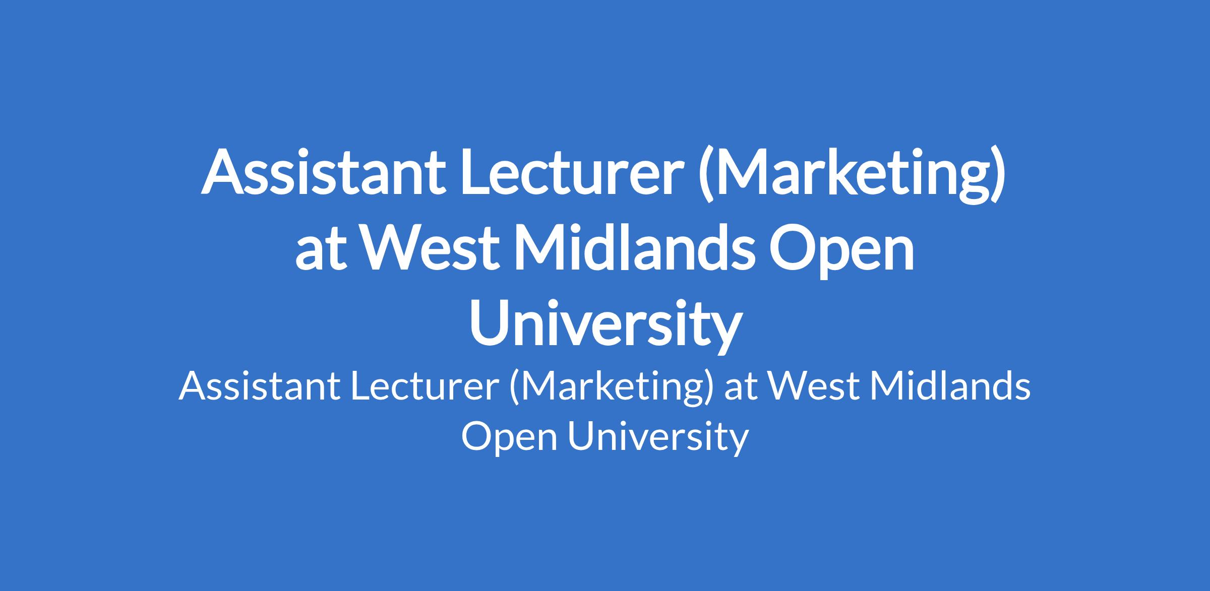 Assistant Lecturer (Marketing) at West Midlands Open University
