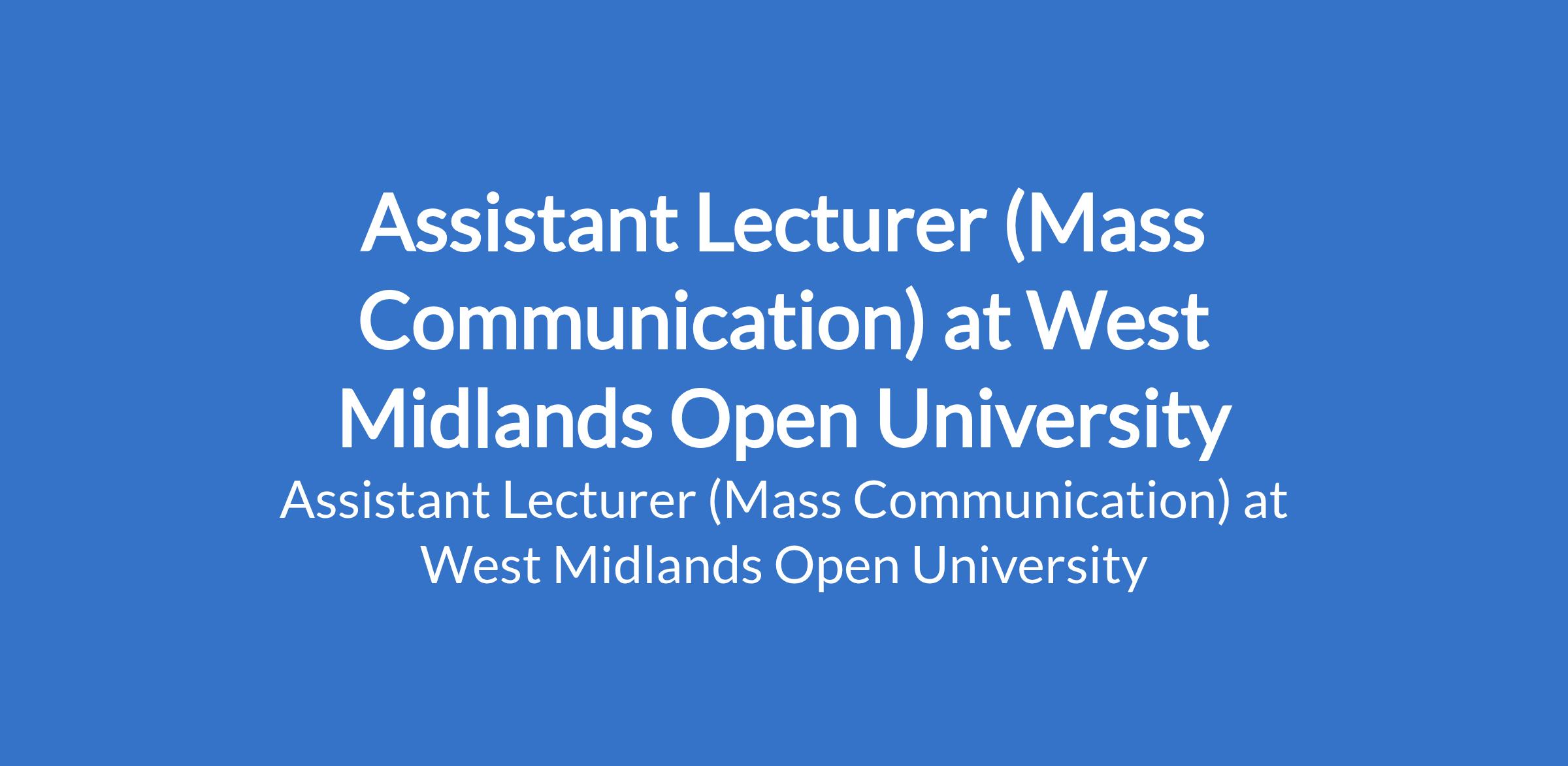 Assistant Lecturer (Mass Communication) at West Midlands Open University