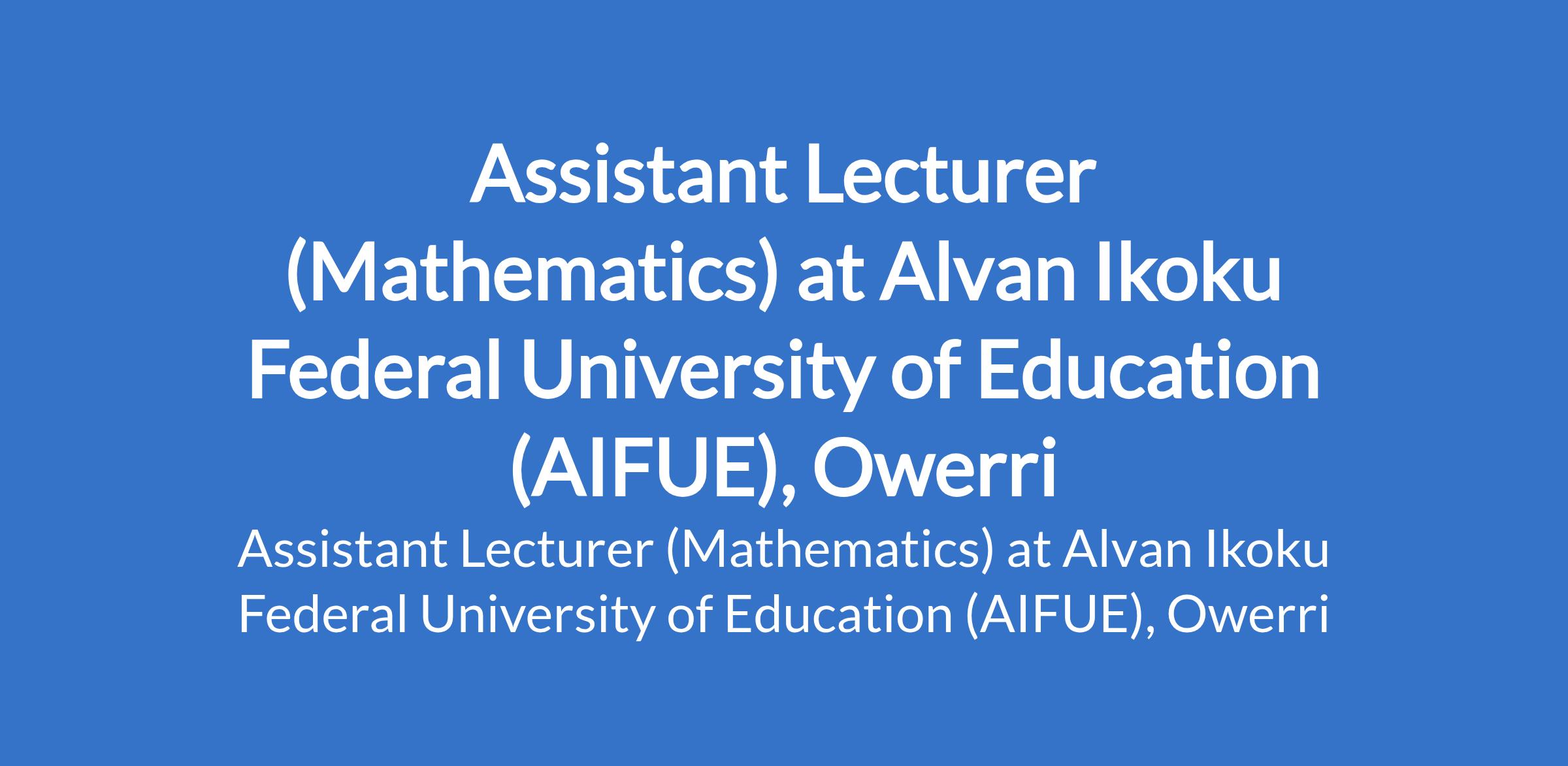 Alvan Ikoku Federal University of Education (AIFUE), Owerri invites applications from suitably qualified candidates for the position of: Assistant Lecturer (Mathematics). The position is located in Imo State. Interested candidates should possess a Master's Degree in the relevant discipline.