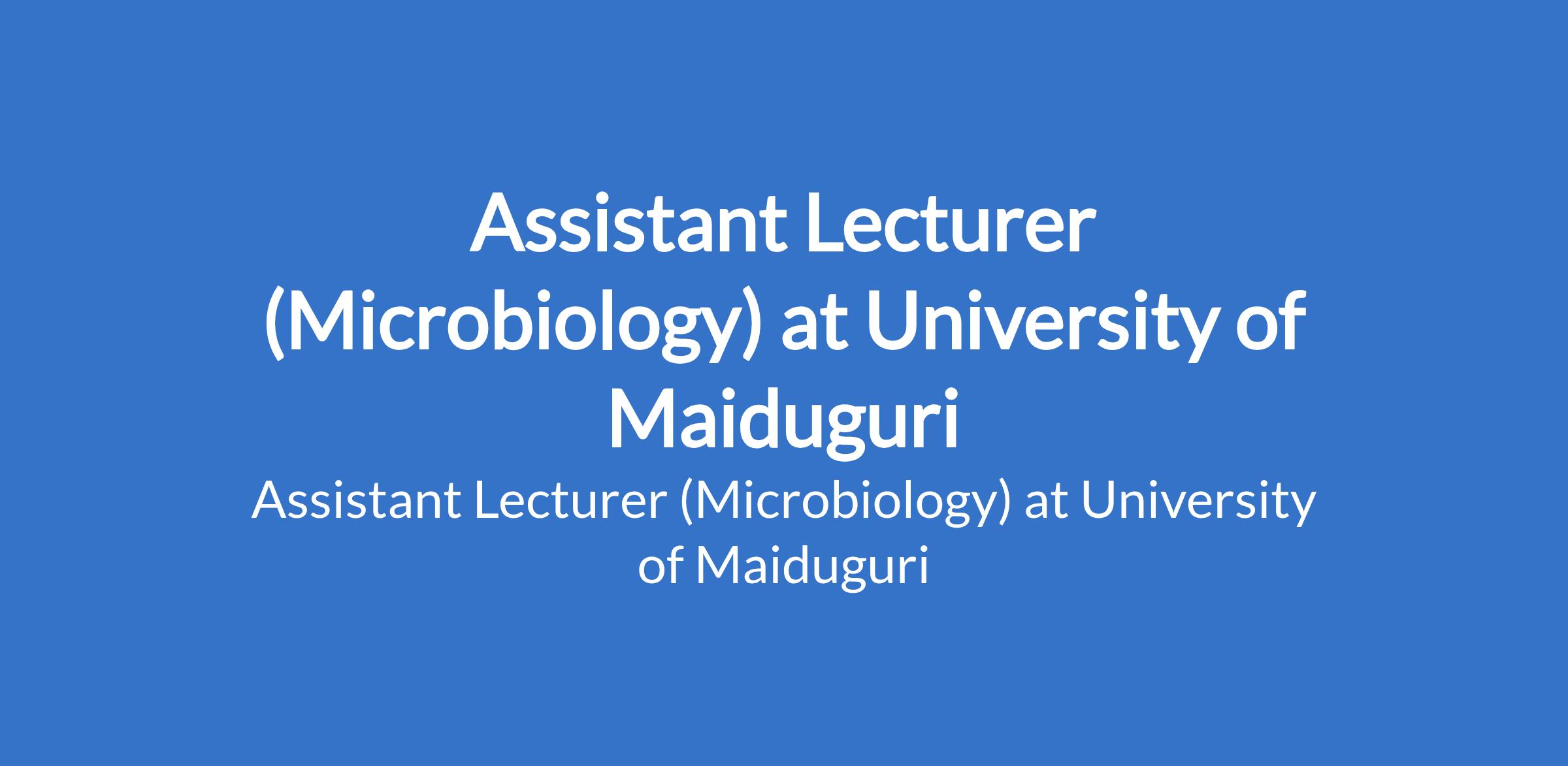 University of Maiduguri invites applications from suitable candidates to fill the position of: Assistant Lecturer (Microbiology). The position is located in Borno State. Interested candidates should possess a Master's Degree from University of Maiduguri or another recognised institution or a First Class / Second Class Upper Degree with relevant professional qualification where applicable.