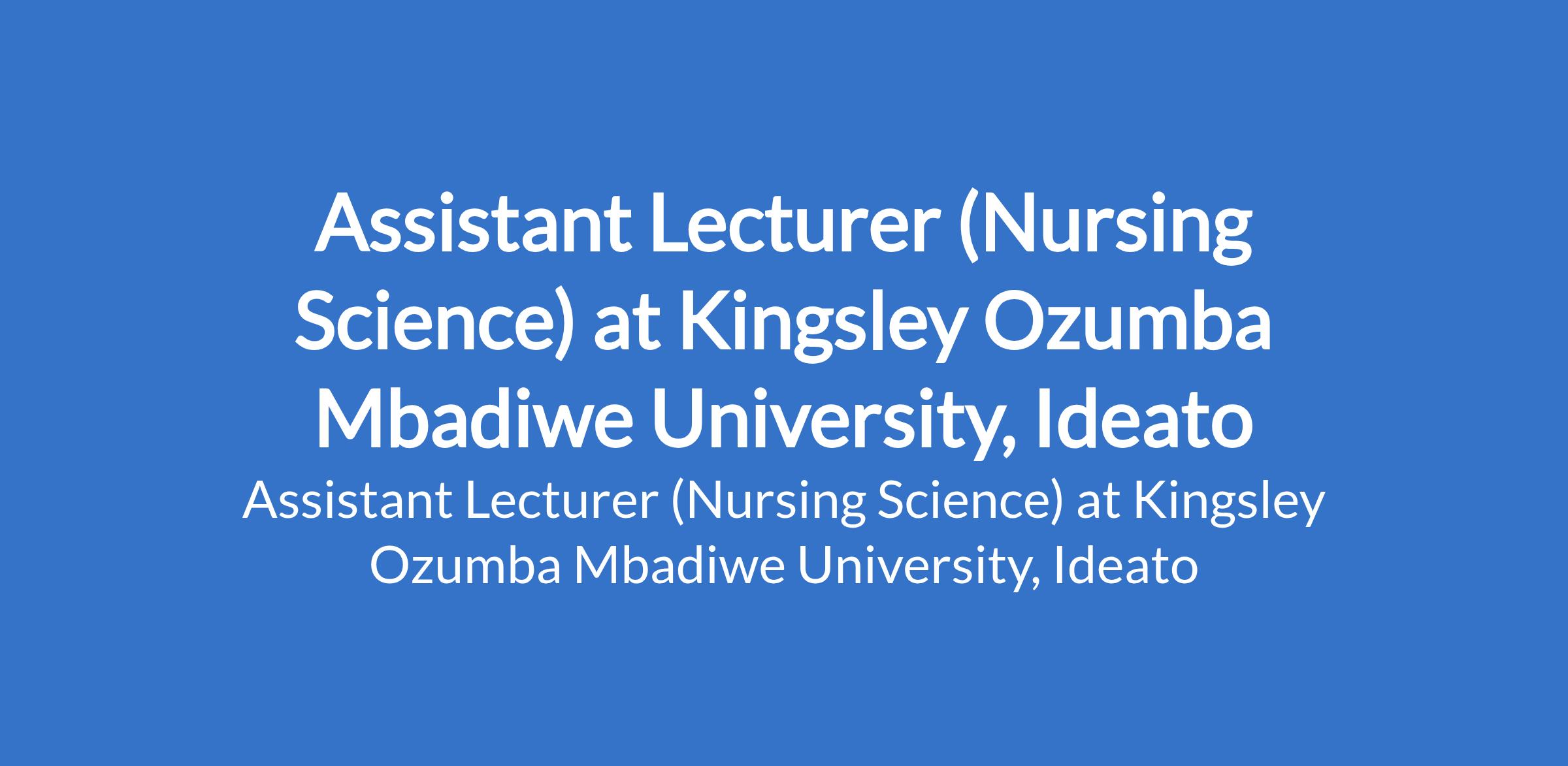 Assistant Lecturer (Nursing Science) at Kingsley Ozumba Mbadiwe University, Ideato