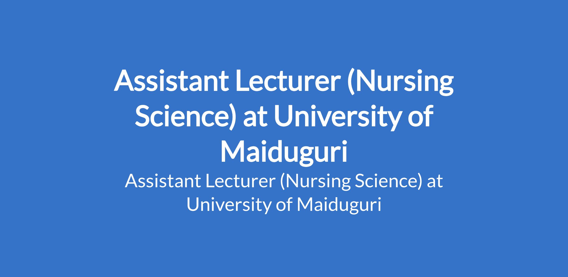 University of Maiduguri invites applications from suitable candidates to fill the position of: Assistant Lecturer (Nursing Science). The position is located in Borno State. Interested candidates should possess a Master's Degree from University of Maiduguri or another recognised institution or a First Class / Second Class Upper Degree with relevant professional qualification where applicable.