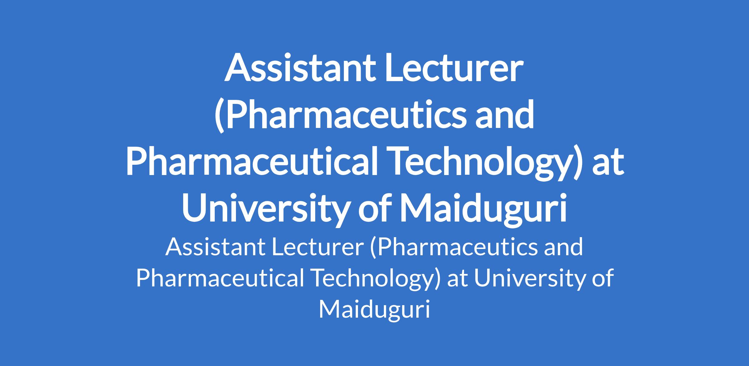 University of Maiduguri invites applications from suitable candidates to fill the position of: Assistant Lecturer (Pharmaceutics and Pharmaceutical Technology). The position is located in Borno State. Interested candidates should possess a Master's Degree from University of Maiduguri or another recognised institution or a First Class / Second Class Upper Degree with relevant professional qualification where applicable.