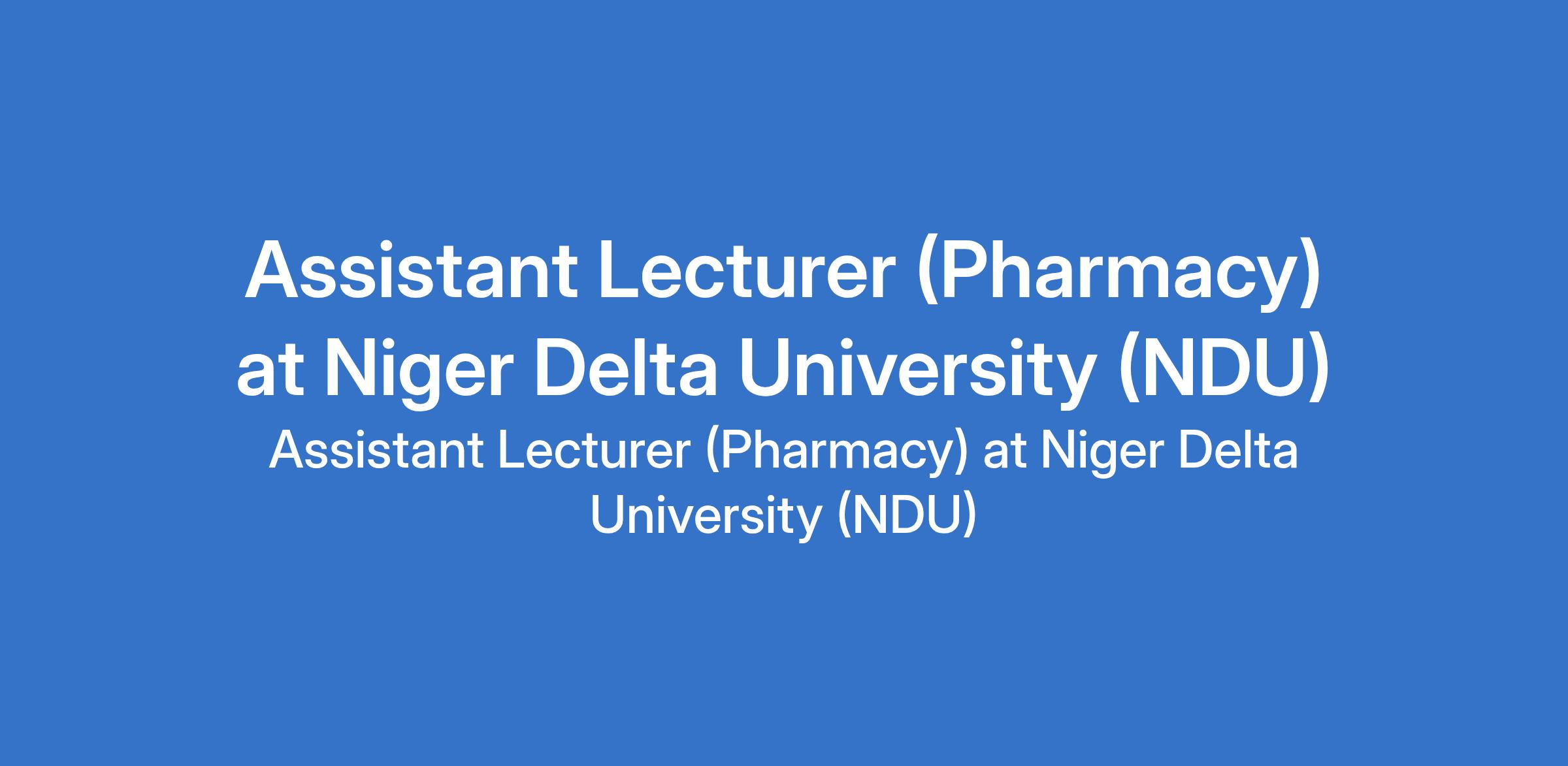 Niger Delta University (NDU) invites applications from suitably qualified candidates to fill the position of: Assistant Lecturer (Pharmacy). The position is located in Wilberforce Island, Bayelsa State. Interested candidates should possess a good First Degree not less than second class lower division plus a Masters Degree, or a Masters Degree with professional registration and must be registered on Google Scholar.