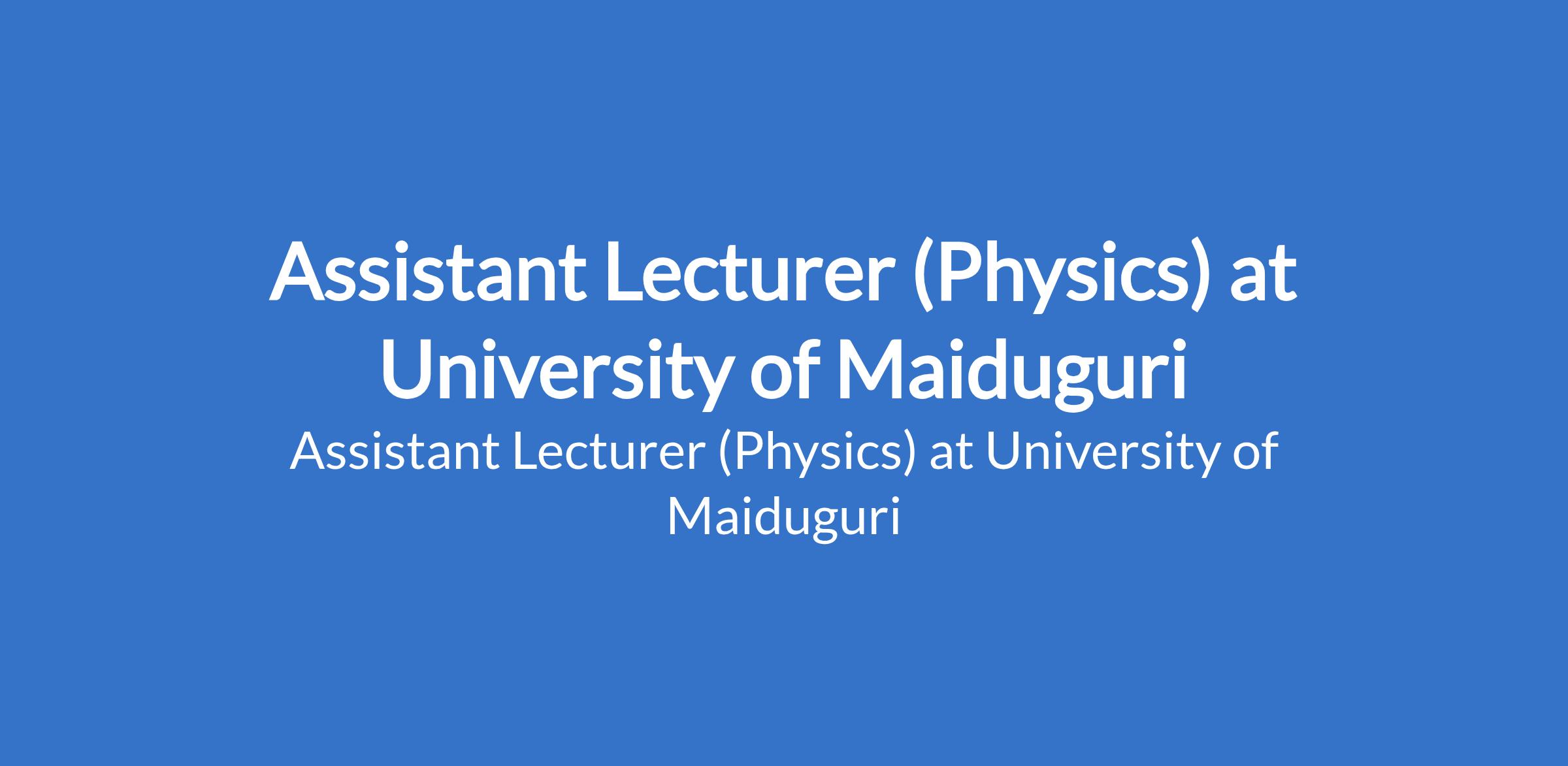 University of Maiduguri invites applications from suitable candidates to fill the position of: Assistant Lecturer (Physics). The position is located in Borno State. Interested candidates should possess a Master's Degree from University of Maiduguri or another recognised institution or a First Class / Second Class Upper Degree with relevant professional qualification where applicable.