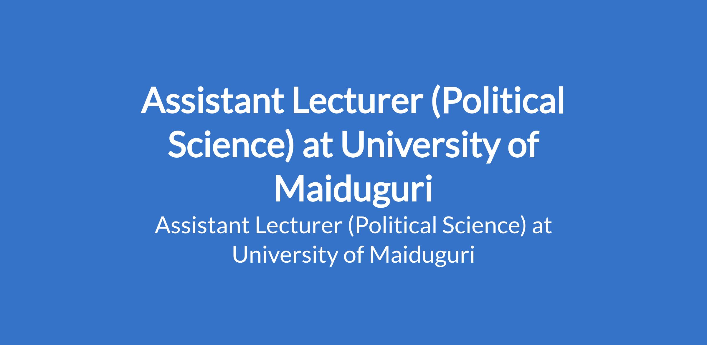 University of Maiduguri invites applications from suitable candidates to fill the position of: Assistant Lecturer (Political Science). The position is located in Borno State. Interested candidates should possess a Master's Degree from University of Maiduguri or another recognised institution or a First Class / Second Class Upper Degree with relevant professional qualification where applicable.