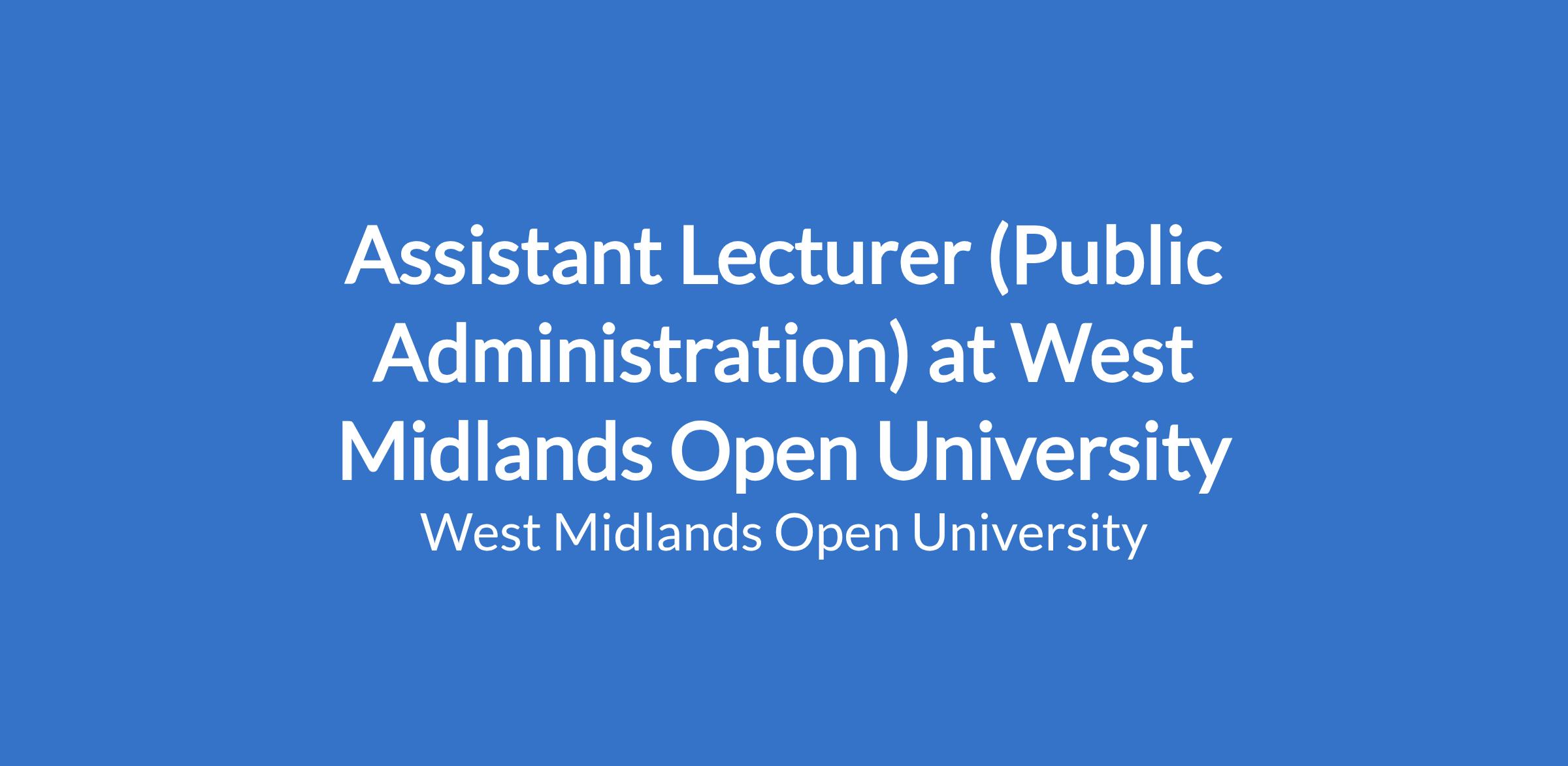 Assistant Lecturer (Public Administration) at West Midlands Open University