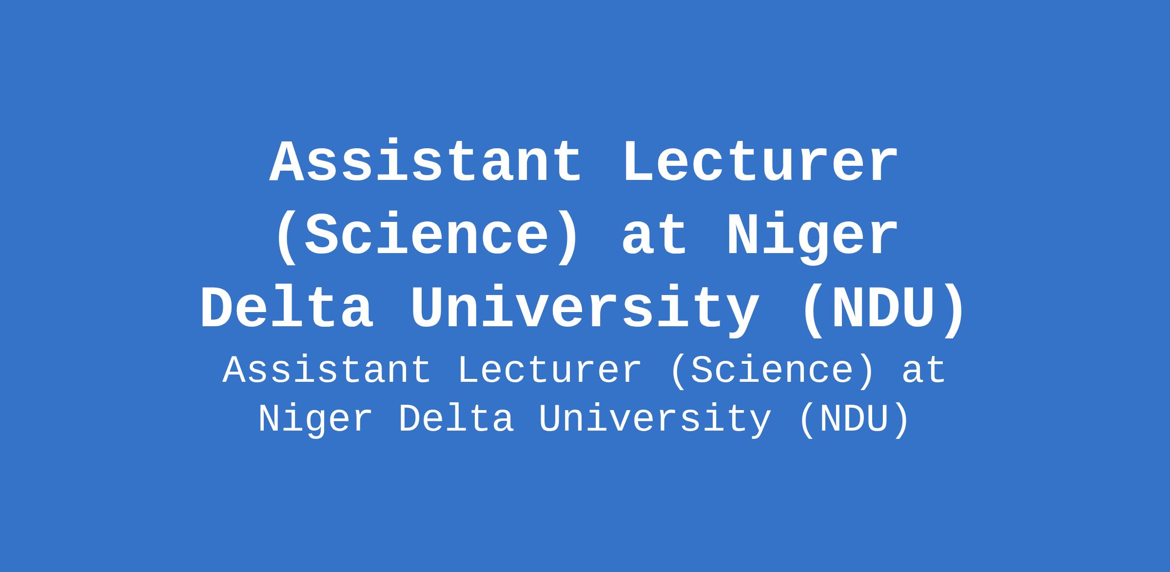 Niger Delta University (NDU) invites applications from suitably qualified candidates to fill the position of: Assistant Lecturer (Science). The position is located in Wilberforce Island, Bayelsa State. Interested candidates should possess a good First Degree not less than second class lower division plus a Masters Degree, or a Masters Degree with professional registration and must be registered on Google Scholar.