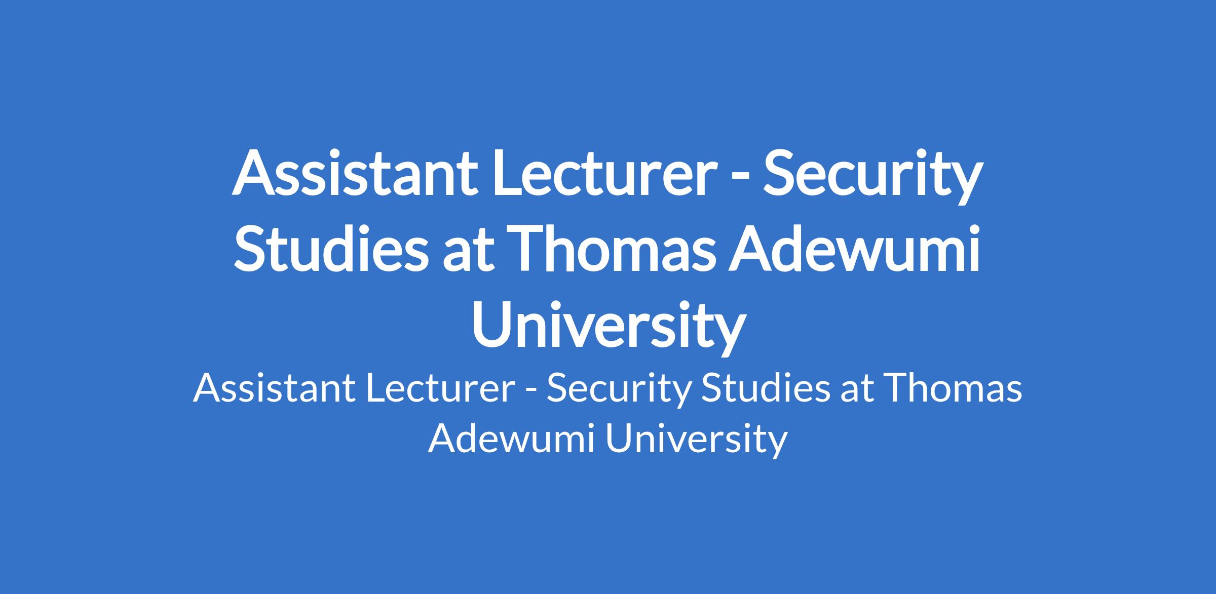 Thomas Adewumi University invites applications from suitable candidates to fill the position of: Assistant Lecturer - Security Studies. The position is located in Kwara State. Interested candidates should possess an MSc in Security Studies, Criminology, Criminal Justice, or a closely related field.